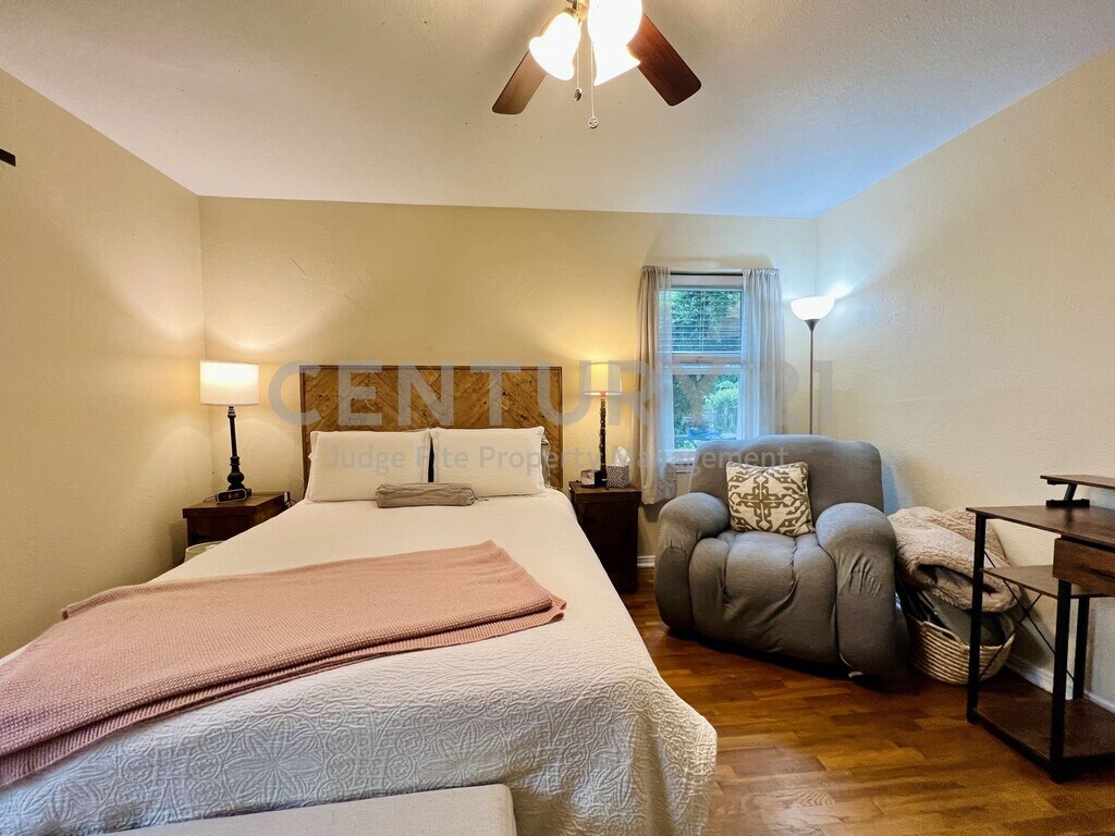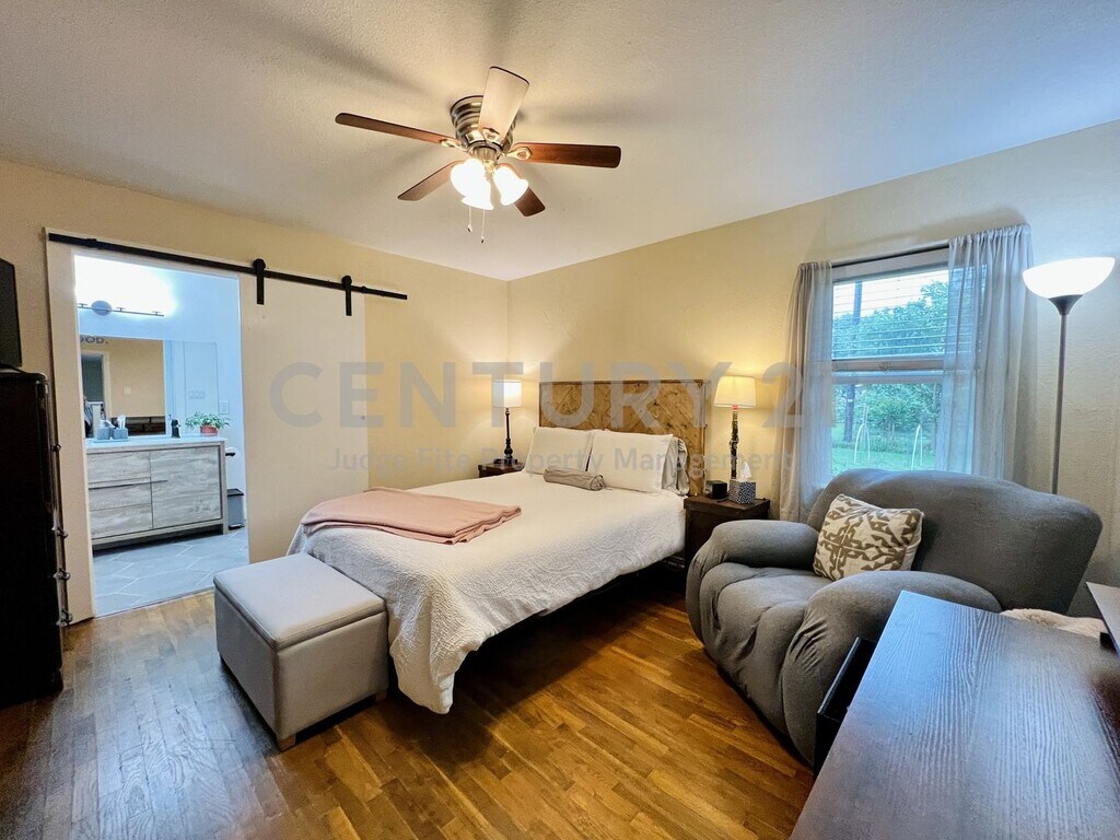 Well-maintained 2-bedroom, 2-bath home featuring a thoughtful layout and inviting spaces throughout. The primary bedroom includes a beautifully added ensuite bath with an oversized shower and skylights that bring in great natural light. The kitchen offers a gas range, refrigerator, and views of the spacious backyard, along with a cozy breakfast area. Between the kitchen and living room, you’ll find ample built-in storage—perfect for books, décor, or keepsakes. Enjoy real hardwood floors throughout the home. The backyard is generously sized and ideal for entertaining, complete with a deck, pergola, and a convenient storage shed. Additional features include a 1-car garage, a separately built 1-car carport, and a laundry area located in the garage. Home is walking distance to parks and Nimitz High School. Only small pets allowed with owner approval. $75.00 APPLICATION FEE PER APPLICANT OVER 18*$175.00 LEASE ADMIN FEE DUE AT LEASE SIGNING*WE DO PAPERWORK*TENANT / AGENT TO VERIFY ALL INFORMATION*ONLY SMALL PETS ALLOWED WITH OWNER APPROVAL*NO SMOKING PLEASE*FREE STANDING MICROWAVE, REFRIGERATOR & STORAGE SHED ARE NON-WARRANTIED ITEMS