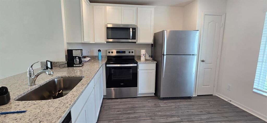 Welcome to this brand-new single-story home in the amenity-rich Lake Marion Village community of Kissimmee. This 3-bedroom,2-bathroom residence offers ample of thoughtfully designed living space,including an open-concept living/dining/kitchen layout featuring granite countertops and upper wood cabinets with crown molding. The master suite is tucked for privacy and includes a walk-in closet and an ensuite bathroom — perfect for comfort and convenience. You’ll enjoy a large backyard offering plenty of outdoor space for entertaining or relaxing which provides a serene setting backing onto trees/wooded area for added privacy. A generous 2-car garage,and the peace of a newer build home in a quiet neighborhood. Located just minutes from major commuting arteries,shopping,dining and in close proximity to Orlando’s attractions,this home offers both lifestyle and location. Just call today and schedule your private tour! MLS# O6355904