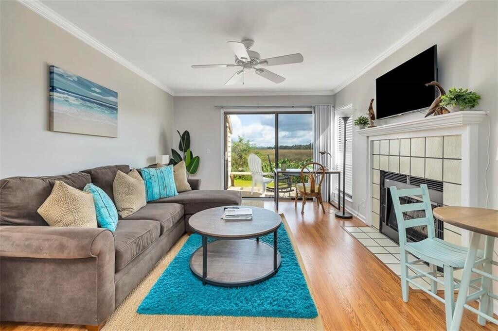 Enjoy the most peaceful sweeping views in this updated 3 bedroom, 2.5 bath condo, nestled in the serene and picturesque Brockinton marsh on St. Simons Island. Accommodating up to 8 people, the first floor includes a king bedroom with an en-suite bathroom. The two generously sized second floor bedrooms, each offers a peaceful sanctuary for rest and relaxation. Open concept dining room and family room area with a wood burning fireplace, makes for comfortable living, and ample space for gathering. There is a well-maintained kitchen equipped with all the essentials, and convenient first floor laundry. Enjoy the scenic panorama from the back decks on both floors, providing serene, outdoor living with expansive marsh views and space for al fresco dining. The unit offers two assigned parking spaces conveniently located directly in front, and a large storage area for beach gear and bikes. Residents of Brockinton Marsh enjoy access to a range of amenities, including a sparkling community pool, well-maintained grounds, and convenient parking. Ideally located for easy access to the island’s pristine beaches, charming shops, and delightful dining options, this charming space creates a perfect blend of comfort and convenience, which offers a great home base for exploring the area. The natural beauty of the surroundings provides a sense of peace, serenity, and a great place to call “homeâ€.