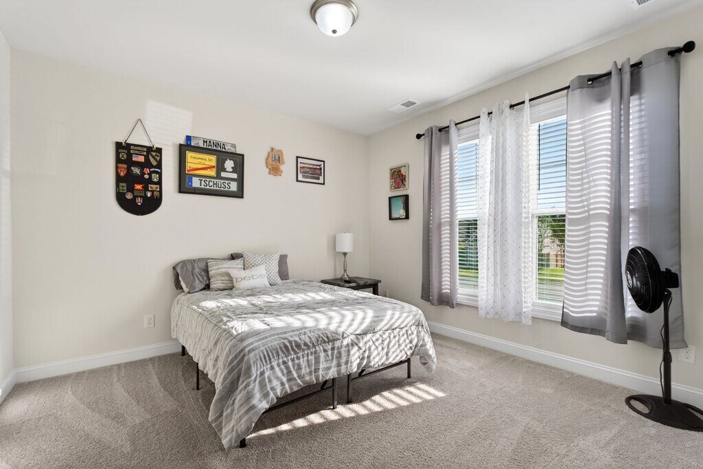 Be the first to truly enjoy this beautifully designed ranch-style Radford floor plan, offering 4 spacious bedrooms and 3 full bathrooms with stylish, modern finishes throughout. The open-concept layout creates a bright, welcoming space perfect for both relaxing and entertaining. The kitchen is a standout feature, complete with stainless steel appliances, sleek quartz countertops, a large island, and plenty of cabinet space ideal for cooking, hosting, or casual dining. You’ll love the flexible bonus room, perfect for a home office, playroom, or media space, plus a covered patio where you can unwind outdoors year-round. With durable flooring throughout the main living areas and carpet only in the bedrooms, this home blends comfort with easy maintenance. Prime Location: Enjoy quick access to I-20 and be just minutes from shopping, dining, and everyday essentials at Village at Sandhills and Route 1. Commuting is simple with Fort Jackson about 15 minutes away and Downtown Columbia just a short 20-minute drive. This home offers the space, style, and convenience renters are looking for. Don’t miss it! Schedule a showing today! Due to the increasing surge in scams, we are no longer accepting Zillow applications. Photo ID is required to view the property and upon move in. Approval is based on an overall credit, background check, and income verification. Anyone 18 years of age or older that will live in the home has to undergo a background check. Application fee is $100 (non-refundable). Link to be provided upon request. 1 year lease. Renter is responsible for all utilities.