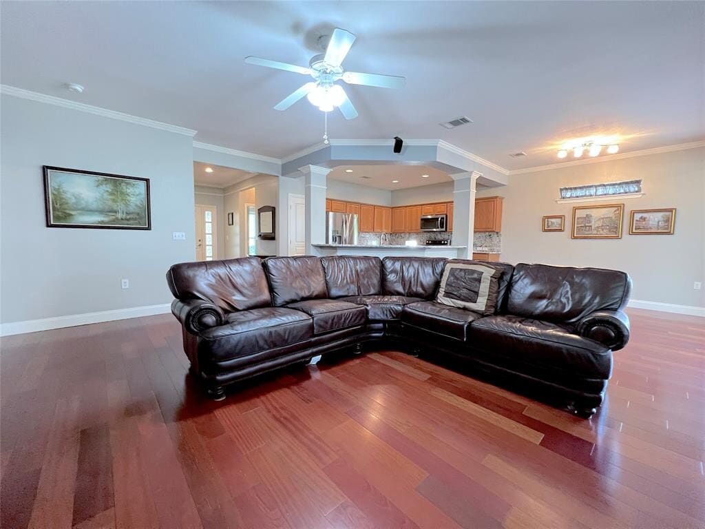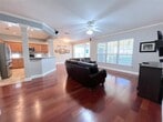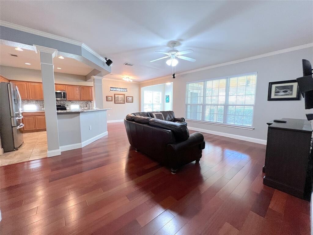 Gorgeous 3 bed/2 bath in Sun City! Cherry wood floors throughout, no carpet! Spacious kitchen open to family room with upgraded granite counters and stainless steel appliances. Stainless steel quad-door Refrigerator and front-loader washer and dryer INCLUDED! Nice backyard space with wrought iron fencing, a flagstone patio, and a covered patio with bean-board ceiling. Great floorplan with a sunroom! Sprinkler system, ceiling fans in every room, Nest thermostat. Sun City has no shortage of amenities including multiple pools, pickle ball, tennis, trails, shopping, restaurants, ponds, multiple golf courses, clubs, gym rooms, and more! *Age 55+ Community. Only one person has to be 55+, kids are allowed. Minimum credit score of 620 and minimum 3x rent as income. No smoking.*