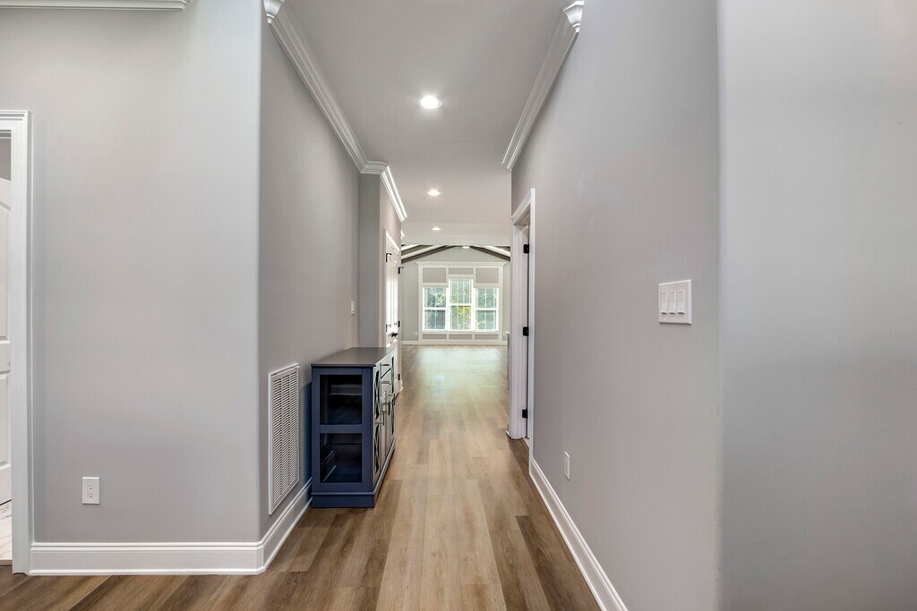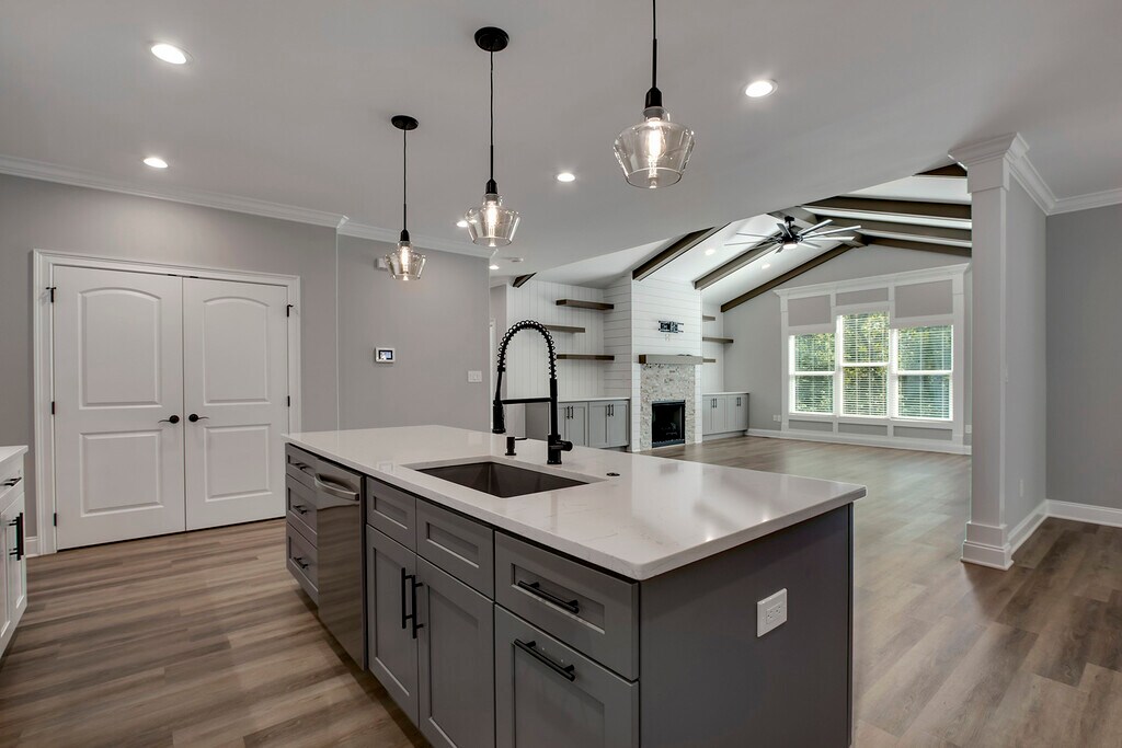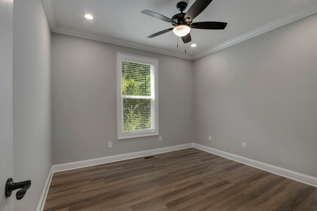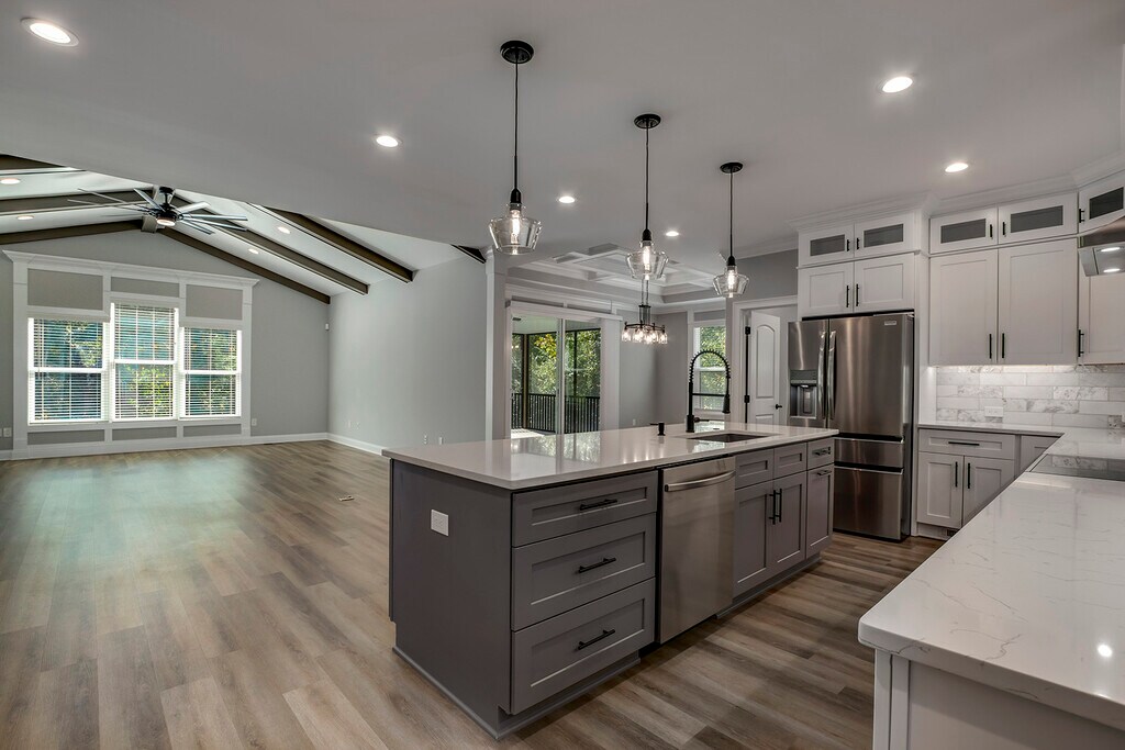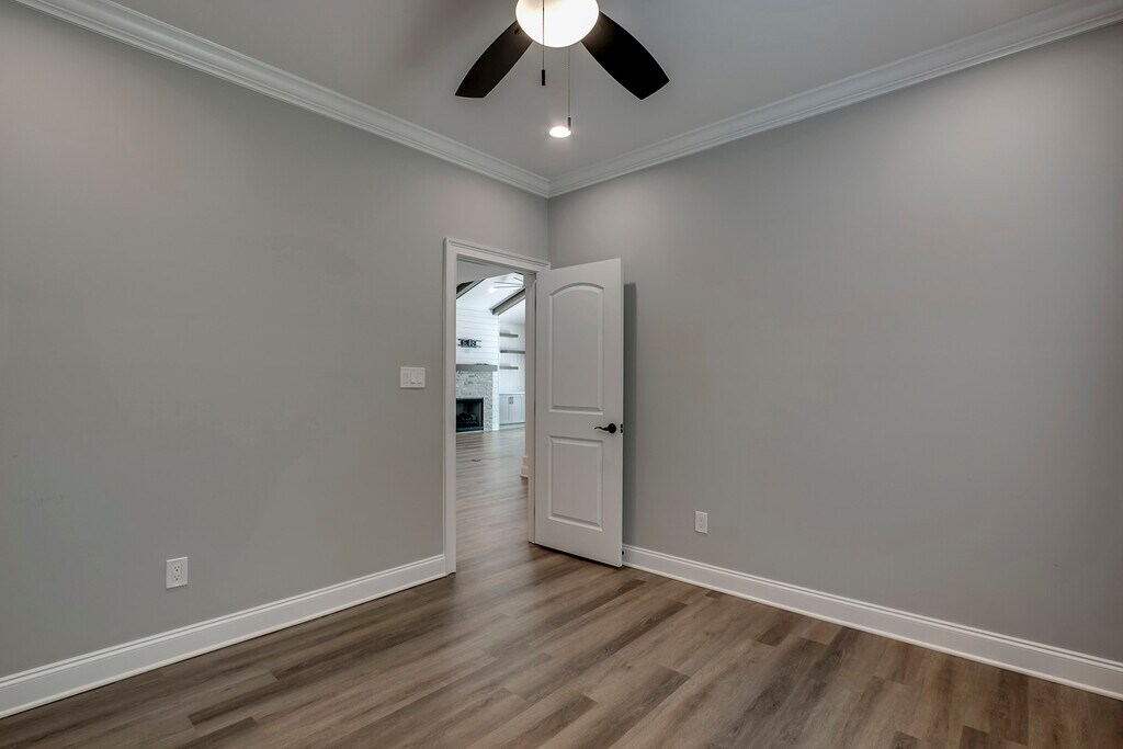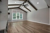 LIKE-NEW single-level home built in 2024, offering 3 bedrooms, 2 baths, plus a dedicated office or hobby room. This open-concept floor plan features cathedral ceilings in the living room, abundant natural light, and LVP flooring throughout. The modern kitchen includes stainless steel appliances, soft-close cabinetry, quartz countertops, and a large center island. The primary suite offers a spacious ensuite bath and walk-in closet. Additional features include a large laundry room and ample storage. Enjoy outdoor living on the screened porch overlooking a peaceful, level backyard with dedicated green space behind. A cleared trail provides access to the lake for kayaking. Porch stairs lead to a concrete patio and a walk-in crawl space with a concrete floor—ideal for storage or workshop use. Tobacco Free and Non-Vaping Home Homeowner Association Fee INCLUDED IN RENT Utilities must be in tenant's name One dog under 40 pounds considered on a case-by-case basis with pet deposit Minimum Rental Period: 6 months Security and Cleaning Deposit required.