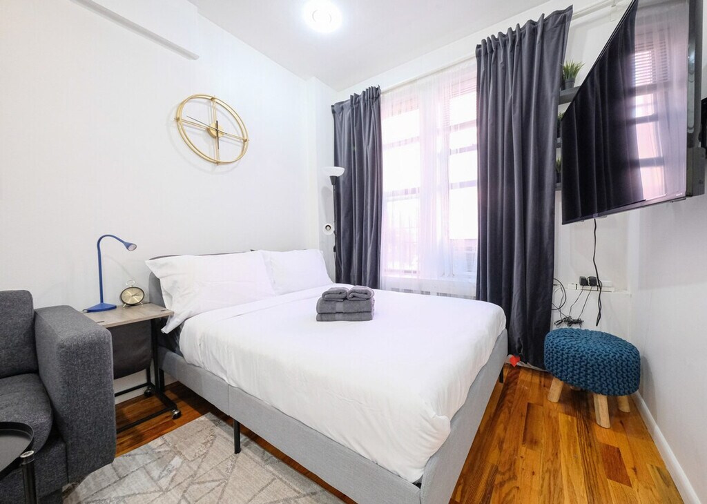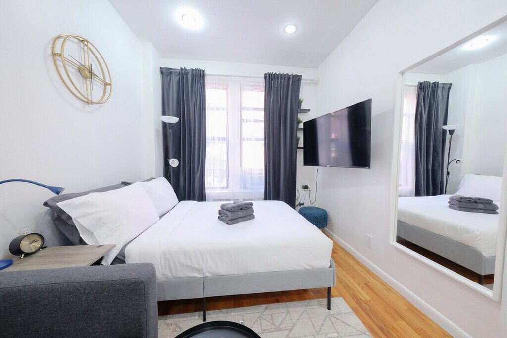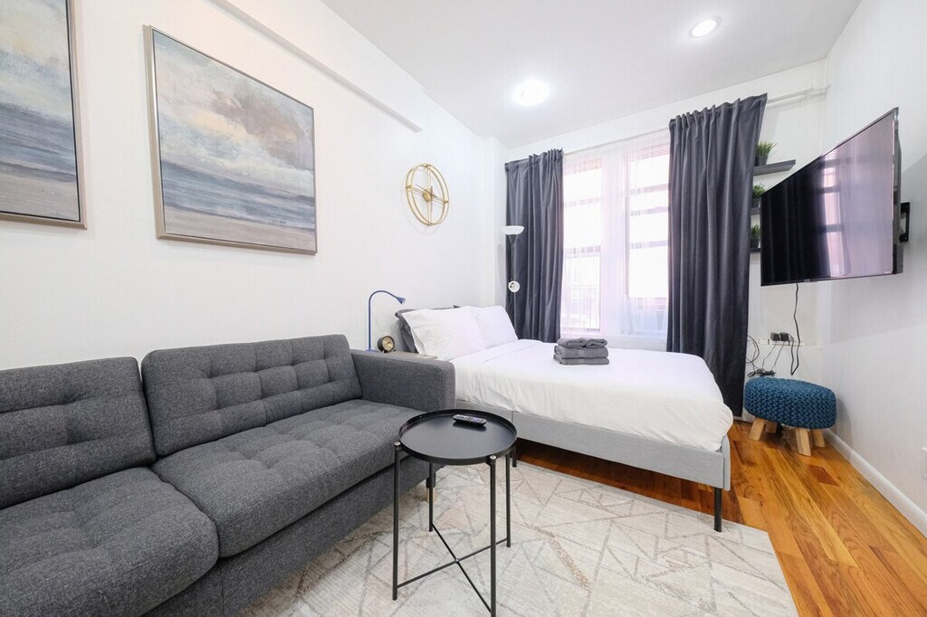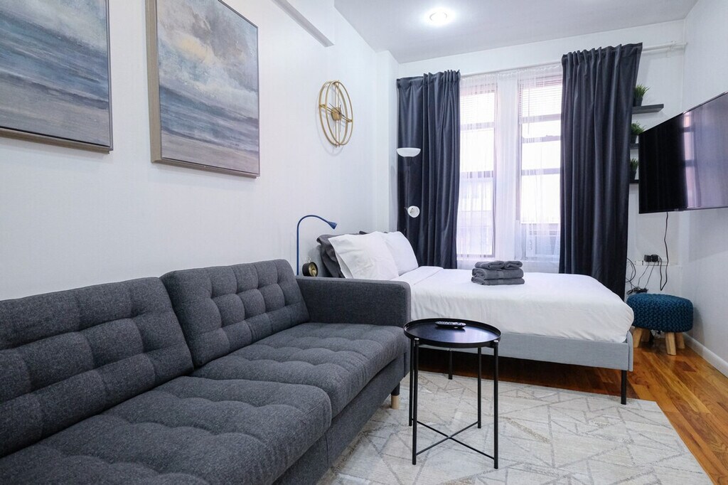 The advertised rate of $5,209/month is the lowest available price, based on a 1 month(s) stay with a move-in date of April 10, 2026. Rates vary depending on the duration of stay, season, and other parameters. For exact pricing and additional pricing components, please visit our website and enter your desired move-in and move-out dates. The rate is applicable when billed upfront; it can be higher if billed in multiple payments. Feel at home in this cozy, fully furnished studio apartment near Central Park, offering first-floor access with no stairs to climb. Newly renovated and ready for your stay, this hidden gem in the heart of New York City provides great value for money. The apartment features a fully equipped kitchen with a large refrigerator, stovetop, oven, coffee maker, toaster, microwave, dishwasher, and all necessary utensils and cutlery. Comfortable sleeping arrangements include a full-size bed and a sleeper sofa, perfect for additional guests. Relax in a beautifully designed marble bathroom, with essentials such as bed linens, towels, an iron, and a hairdryer provided. Stay connected with complimentary Wi-Fi and enjoy all utilities included, such as heat, hot water, and gas/electricity. Free street parking is available, but be sure to check alternate side parking rules to avoid tickets. Nearby laundry services include A B Elite Cleaners and Merlin Laundromat, both located on 2nd Ave. Located just a short walk from Central Park, this apartment offers easy access to one of NYC’s most iconic landmarks. Only a couple of blocks away from the 6 train at 103rd Street station, it provides convenient transit access to explore the city. Discover the vibrant Harlem neighborhood, renowned for its arts scene, historic landmarks, diverse cuisine, and lively community events. Smoking inside or outside of the apartment will result in an automatic fine of $500. Pets are not allowed, and a fine of $500 will be charged if this rule is violated. Quiet hours are from 10 pm to 7 am. Check-out time is at 11:00 AM, and all dishes should be placed in the kitchen sink, with all trash in the trashcans. A laptop computer is not included, and you cannot receive mail at this address, so please consider opening a PO Box. Kindly note that a $350 refundable security deposit is required and will be collected directly by the partner after your booking is confirmed. The security deposit will be handled through direct communication with the partner and is not processed automatically. [SI]