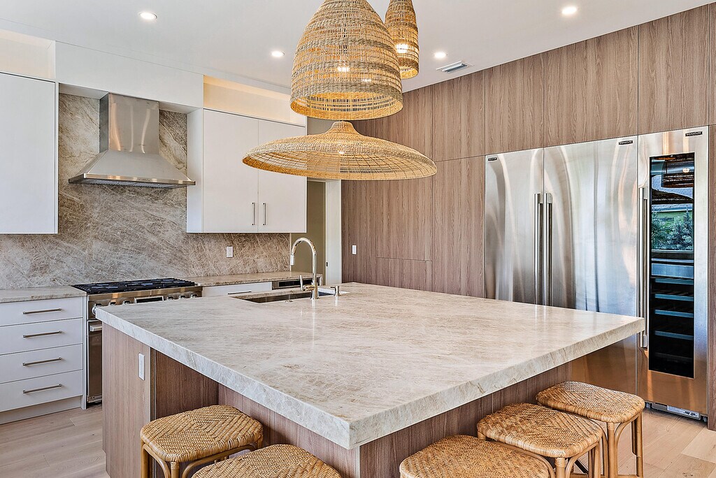 Coastal, chic home with fabulous chef's kitchen featuring gas stove, refrigeration columns, double oven, 2 sinks and ample island with honed quartzite countertops overlooking the brand new swimming pool and spa. Well-furnished and fully equipped, this 5 bedroom, 3 bath and one half bath home was recently completed and ready for occupancy. Centrally located in SoSo near restaurants, shopping, Palm Beach, Kravitz Center and PBI airport. Available furnished annually for $20,000/month, seasonally $25,000/month (6 month minimum).