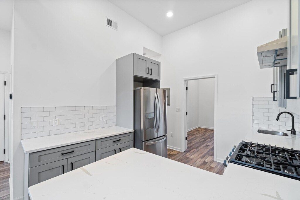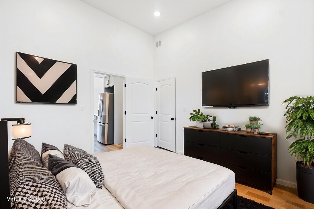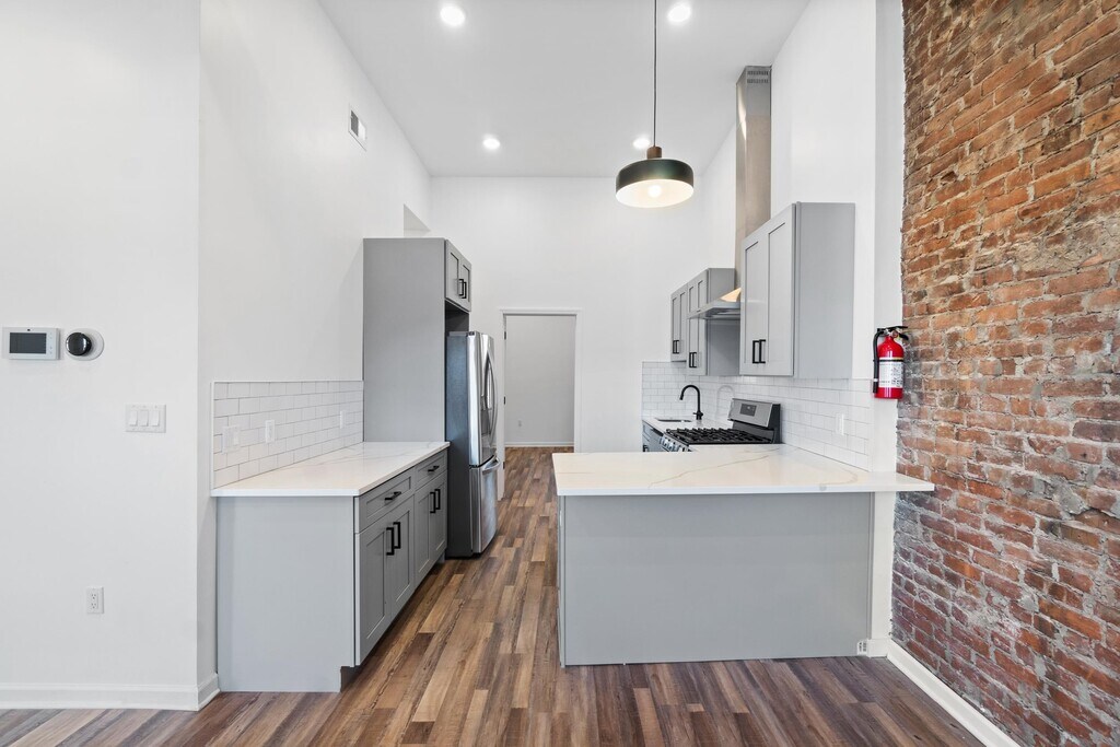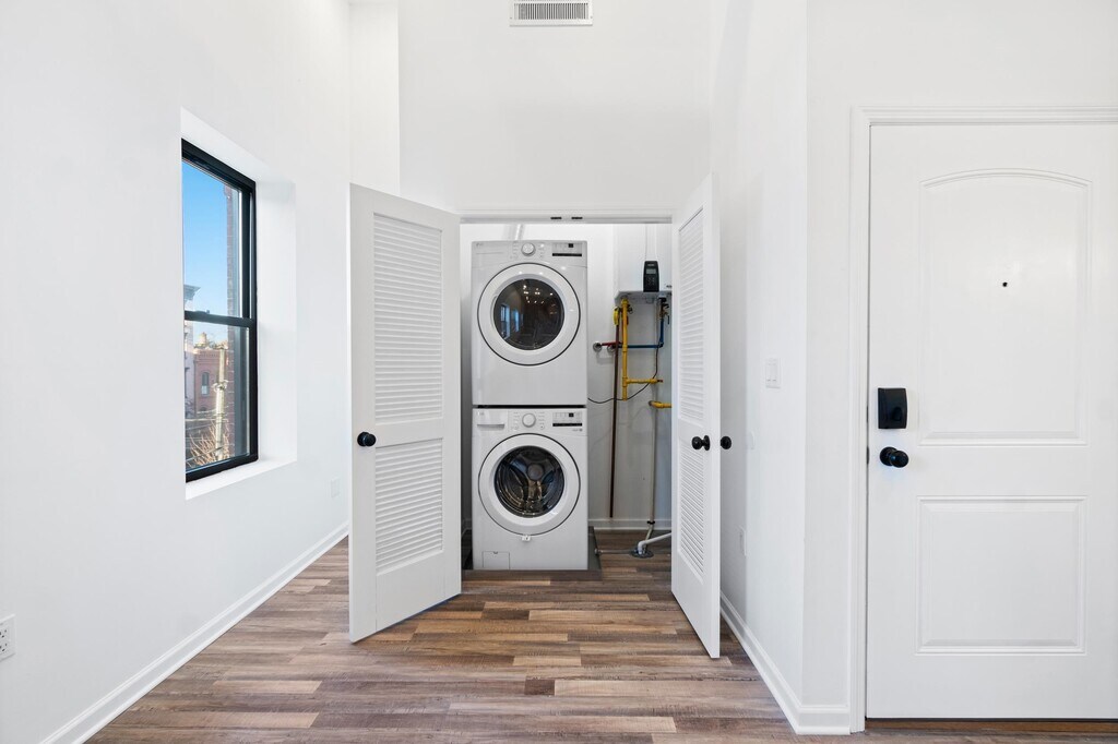 This stunning two-bedroom, two-bathroom apartment seamlessly blends timeless brownstone charm with modern conveniences. With nearly 13-foot ceilings in the living room and kitchen area, the home feels exceptionally spacious and airy. Exposed brick walls in the living room and one of the bedrooms add warmth and character, while natural sunlight floods every corner. Designed for modern living, the apartment features an in-unit washer and dryer, central air conditioning, a tankless hot water heater, and a fully equipped kitchen with all-new stainless steel appliances, including a vented hood. It’s also a smart apartment, equipped with a Nest thermostat, smart door locks, and an intercom system for convenience and security. Step right outside the front door to find protected bike lanes that connect directly to the bike lanes on Grove Street, making this location a cyclist’s dream. Situated in a vibrant neighborhood, you’ll also enjoy easy access to the area’s best restaurants, coffee shops, parks, and the library. The Light Rail station is just a short walk away, offering seamless commuting options. Don’t miss out on this exceptional home that perfectly combines historic charm, modern amenities, and an unbeatable location!