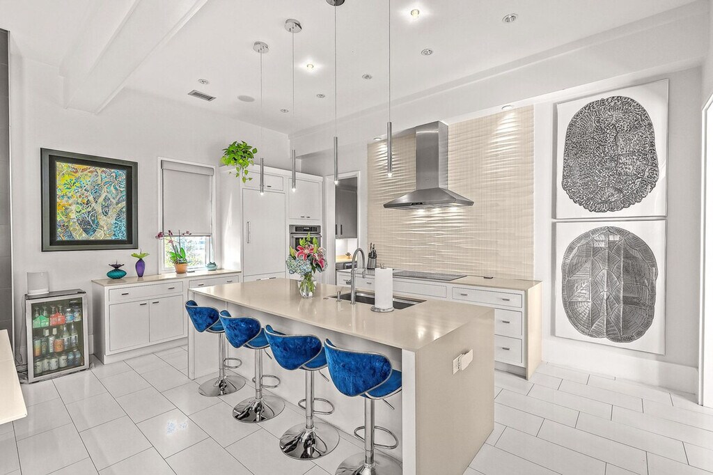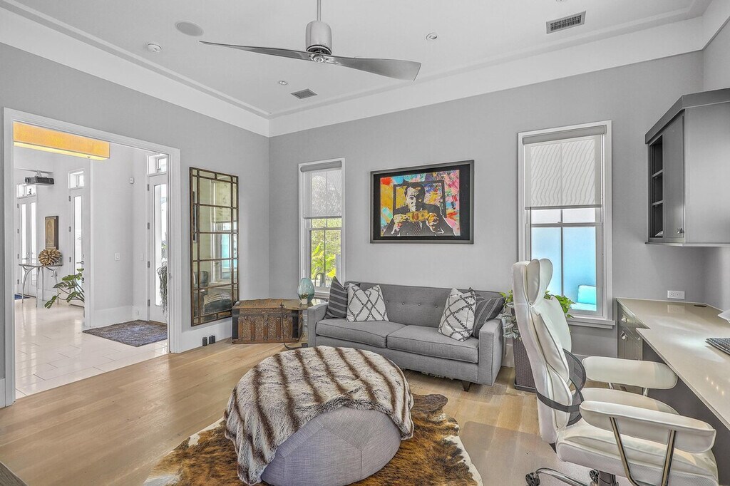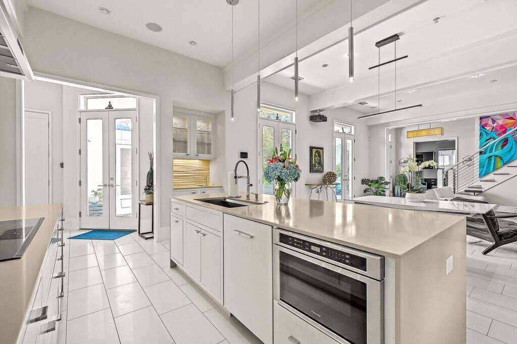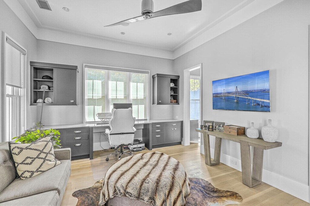Feel at home in this award-winning, fully furnished 3-bedroom, 3-bath home in the Old Village. Blending modern design with traditional living, this home features a unique design that lends itself to maximum privacy between the bedrooms. The master and guest suites surround a central living space with a built-in TV and gas fireplace. Both second-floor bedrooms have en-suite bathrooms, outside porch access, and walk-in closets. An additional workspace is located off the master bedroom. The kitchen's high-end finishes include custom cabinetry, Thermador appliances, and an induction range. The home features an 8-foot privacy wall and offers a secluded feel in a highly sought-after area. Enjoy the cold plunge and the outdoor shower in your own private patio oasis. Located just a few blocks from the harbor, Post House, and OV Gym, the property is minutes from the beach, Coleman Boulevard shops and restaurants, Shem Creek, Alhambra Hall Park, the Old Pitt Street Bridge, and Mt. Pleasant Academy. [SI]