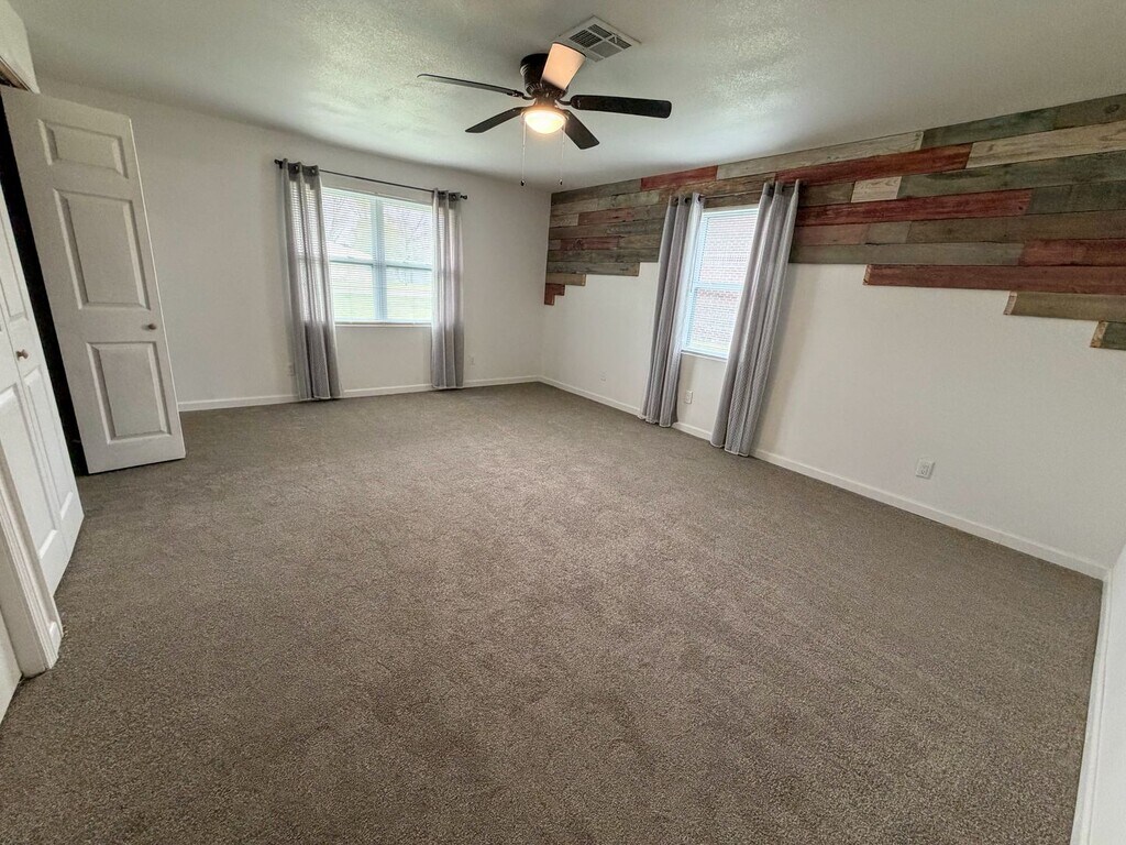 310 S. Lightner Avenue, Iowa, LA Rent: $1,650/month | Deposit: $1,650 Home Features: • Open-concept living and kitchen area with modern finishes • Updated vinyl plank flooring throughout main living areas • Large living room with recessed lighting and ceiling fan • Beautiful kitchen with quartz countertops • Stainless steel appliances, including refrigerator, stove, microwave, and dishwasher • Large kitchen island with additional storage and seating space • Dedicated laundry area with built-in cabinetry • Spacious bedrooms with carpet and ceiling fans • Large primary bedroom with decorative accent wall • Updated bathrooms with modern fixtures • Double vanity in primary bathroom • Walk-in shower in primary bath • Guest bathroom with shower/tub combo • Plenty of closet and storage space throughout the home Exterior Features: • Brick exterior with metal roof • Double garage for parking and storage • Large driveway with additional parking • Spacious yard Utilities and Lawn Care: • Tenant responsible for all utilities. • Lawn care is tenant responsibility. Pet Policy: • No pets. Requirements: • Renters are required to obtain renter’s insurance within 30 days of lease signing. • $50 application fee per applicant. • Each resident age 18 or older must submit a separate application. Contact Information: • Office phone: • Text: How to Apply: • Online: • In person: Executive Properties, 3401 Ryan Street, Suite 307, Lake Charles, LA 70605 For more information, search “Executive Properties – Lake Charles, LA” online.