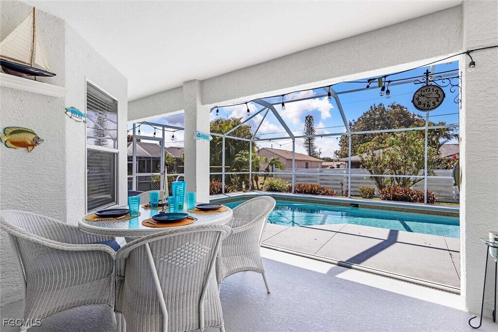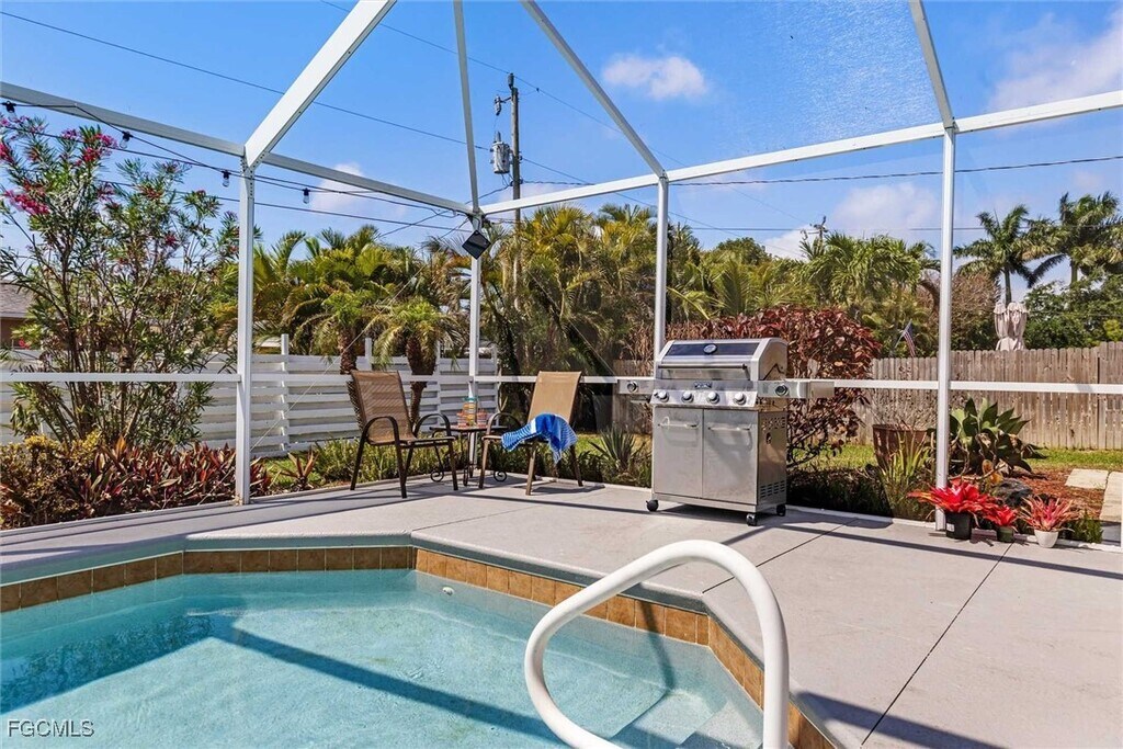 This is a VACATION RENTAL only. Owner will not consider an annual rental. Weekly rentals permitted. Villa IvyLe is an updated 3 bedroom,2 bathroom saltwater solar heated pool home on a beautifully maintained property with tropical landscaping. Conveniently located in the popular SE area of Cape Coral. You are moments away from "Downtown" Cape Coral with a variety of restaurants,bars,and local shops. This modern vacation home is suitable for 6 people. The living room has high ceilings,a large flat-screen TV,and a modern couch,there is also an adjacent recliner. From here,a large sliding door opens up the room to the lanai with a lovely view of the pool. This vacation villa features a split floor plan,which keeps the master bedroom and the 2 guest bedrooms in opposite areas of the house. Make all your meals in the fully equipped,updated kitchen. There are lovely granite countertops and an integrated breakfast bar with additional seating. The dining room offers a place for the family to discuss and relive the day's activities together. The master bedroom suite offers a very large bedroom area. There is a king-sized bed,flat-screen TV,and a desk available to use for those who need to get some work done while away from home. The attached bathroom offers a large walk-in shower. The guest bedroom features a cozy queen-sized bed. Lastly,there is a room perfectly suited for your children as it offers 2 twin beds. Both rooms have ample closet space for you to be able to store your wardrobe and shopping treasures. The guest rooms share the bathroom with a tub/shower combination that also serves as the pool bath as it has direct access to the spacious lanai and pool area. You will no doubt spend most of your time by the pool! Villa IvyLe features a saltwater solar-heated pool with Southern exposure for all-day sun!! Cook your meals on the propane grill and eat at the dining table by the pool with room for four. This area features plenty of outdoor furniture to entertain friends and family. Vacation memories that you will never forget. Moments that you will talk about for a long time! Come and experience an unforgettable vacation in SW Florida at Villa IvyLe. Book today!