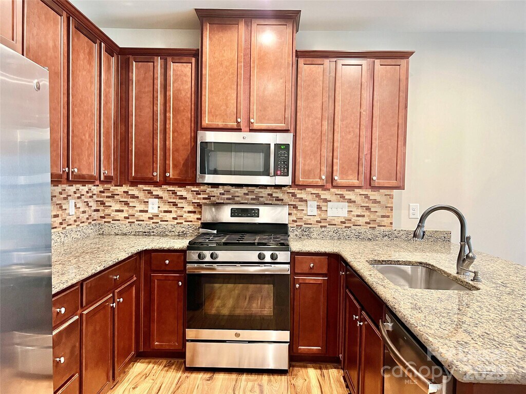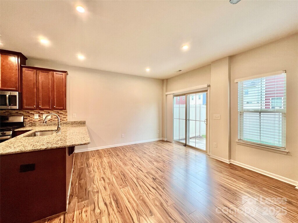 Pristine townhome minutes from 485 and downtown Matthews! 3 Beds,2.5 baths,1 car garage,and a fenced back yard,this townhome has it all! Main level consists of open living room and kitchen. The kitchen has an incredible island with bar,granite countertops,walk in pantry,and under cabinet lighting! Gas range and stainless steel appliances included! The primary bedroom upstairs features tray ceiling,walk in closet and huge bathroom with dual shower heads in the shower! Laundry room is located upstairs. Community features sidewalks,picnic area,fire pit,and pond. Sign up for your tour today! Available 11/20/25 ////// Lease Terms: 12 months. Small dog will be considered. No smoking. 600+ Credit Score required. Proof of income 3x monthly rent. $50 App fee per applicant. Tenant Responsible for following utilities: Water/Sewer,Gas,Electric. Apply online. Resident parking limited to driveway and garage. No additional parking availalble.