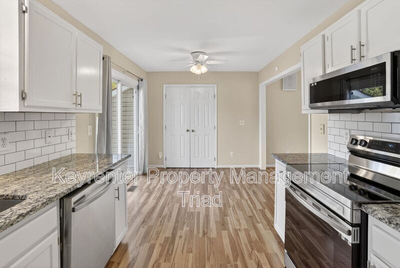 A beautifully maintained 3-bed, 2-bath house with soaring ceilings, an updated kitchen, and a private fenced yard — ready the moment you arrive. From the moment you step inside, vaulted ceilings and a classic fireplace set the tone. Wood-look flooring flows through the living and dining areas in one seamless sweep, creating that rare "great room" openness that makes everyday life feel a little more expansive — and every gathering feel effortless. Recently updated with granite countertops, crisp white cabinetry, a subway tile backsplash, and stainless steel appliances, this kitchen earns its reputation as the heart of the home. Ample prep space, a smooth-top range, and a built-in microwave mean it's as practical as it is polished. New plush carpeting in the primary suite and bedrooms keeps things quiet underfoot. The primary bath's long double vanity makes busy mornings calm, while clean, bright finishes keep the whole space feeling fresh. A rocking-chair front porch and long driveway welcome you home. Out back, mature trees and a fully fenced yard offer real privacy — whether that means a summer deck barbecue, or just somewhere to breathe. RESIDENT BENEFITS PACKAGE: At Keyrenter Property Management - Of the Triad, we strive to provide an experience that is cost-effective and convenient. That’s why we provide a Resident Benefits Package (RBP) to address common headaches for our residents. Our program handles insurance, identity protection, pest control, air filter changes, utility set up, credit building, rent rewards, and more at a rate of $49.95/month, added to every property as an optional program. More details upon application. *If you provide your own insurance policy, the RBP cost will be reduced by the amount of the insurance premium billed by Second Nature Insurance Services (NPN No. 20224621) IMPORTANT THINGS TO KNOW : - NO SMOKING (if you smoke please don’t apply) - Application Fee: $60 per applicant 18 or older (Application processing time is 2-5 business days. Please review Keyrenter's Application Criteria prior to applying.) - Applications can't be screened until all applicants send in all of their documents. - Resident Benefits Package: $49.95 per month (see Rental Requirements for details on website) - Security Deposit is equal to one month’s rent (100% Refundable) - Pets (if allowed): $350 pet deposit per pet. - Contact Us - Call or Text: (336) 600-RENT The amounts of rents, fees, and other expenses may vary. Units may or may not be available. The information contained on this page was accurate as of the date it was posted but may have changed. Nothing here is an offer nor a promise that the amounts stated have or will remain. Interested applicants should contact the management to find the most current costs, fees, and availability of units.