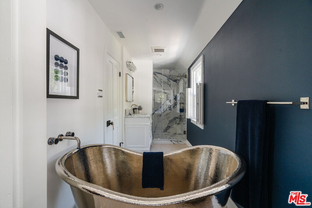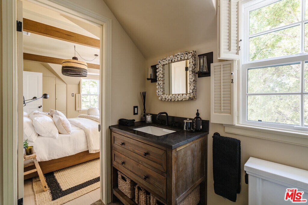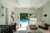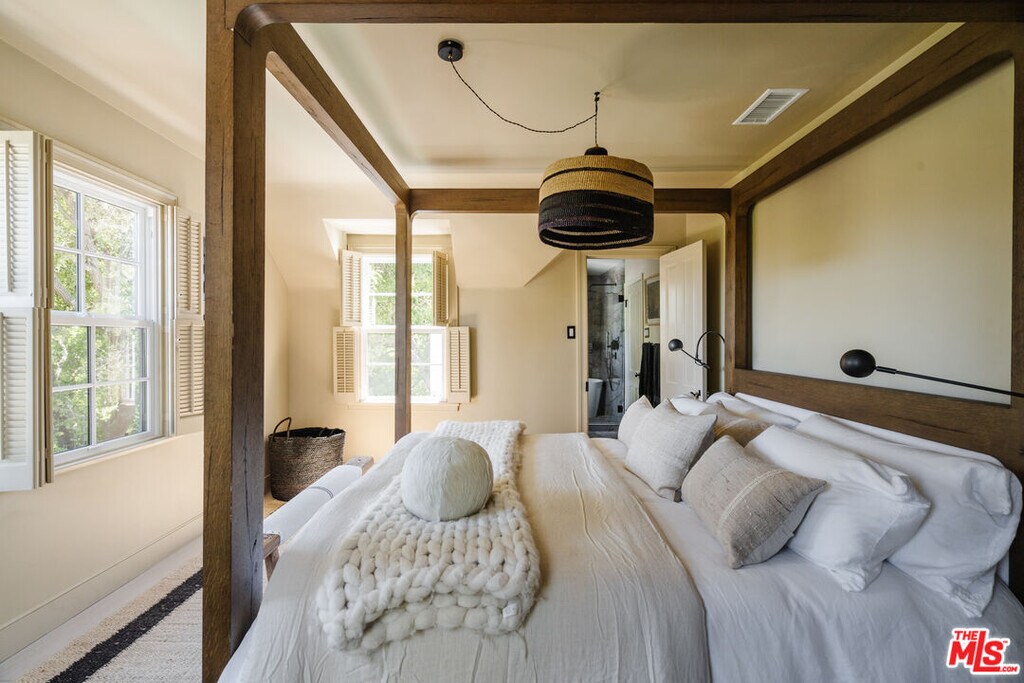 This property is offered on a long-term lease basis. Owner will accept Crypto as payment. Set on nearly an acre surrounded by vibrant, lush greenery sits this beautiful 1950's Traditional home. Gated and hedged, the property offers a serene and private escape from the city while being moments from both Beverly Hills and Studio City. Built by famed architect Gerard Colcord and recently reimagined over the course of 2 years by international designer, Julia Dempster, the two-story home showcases the perfect floor plan for both relaxation and entertaining. From the great room, a massive floor to ceiling glass door that frames picturesque canyon views slides open allowing seamless indoor/outdoor flow. Outfitted with custom cabinets, gold hardware and top of the line appliances, the kitchen is open to the informal dining area and family room with a fireplace and built-in shelving. Great for dinner parties or quaint evenings, the formal dining room looks out to the lush hills through large glass windows. Completing the first level, there is a guest room with an ensuite bathroom and a powder bathroom. Upstairs, you will find 3 bedrooms all with ensuite bathrooms and a moody office. The spacious primary suite features a bespoke fireplace, two bathrooms, two walk-in closets, and windows that welcome an abundance of natural light each day. The epitome of California living with multiple outdoor living spaces including two large patios, a pool, spa, and an outdoor kitchen. The property also hosts a 1 bedroom, 1 bathroom guest house adjacent to the pool that can also be used as a movie theatre, pool house or gym. For ultimate convenience, there is a 2 car garage and ample parking in the driveway. MLS# 25571523