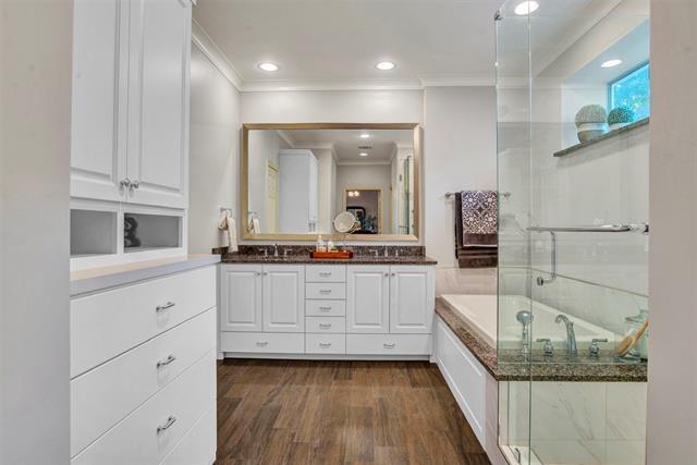 Gorgeous brick two story on a corner lot in the heart of McKinney framed by large mature RED OAK TREES! STUNNING POOL AND BACKYARD! Dramatic two story foyer, with formal Dining room and private office. GREAT FLOOR PLAN! Kitchen opens to Family room with wood floors. Kitchen features gas cook top, Bosch stainless appliances and SS refrigerator! Granite counters and BKFST bar. DEN features a WBFP with raised brick hearth! Lots of windows viewing pool. Large, primary bedroom has sitting area that views pool with tray ceilings and crown molding. Primary bath has a soaking tub, separate frameless shower, dual sinks and walk in closet. Upstairs has a 3 way split BDRM arrangement plus large GAMEROOM with an updated secondary bath! Laundry room offers shelving, perfect for organizing. Home has tons of natural light throughout. Amazing back yard with raised beds, beautiful stone patio with steps leading to the attached spa that cascades into the pool. The perfect place to cool off from that hot Texas sun.