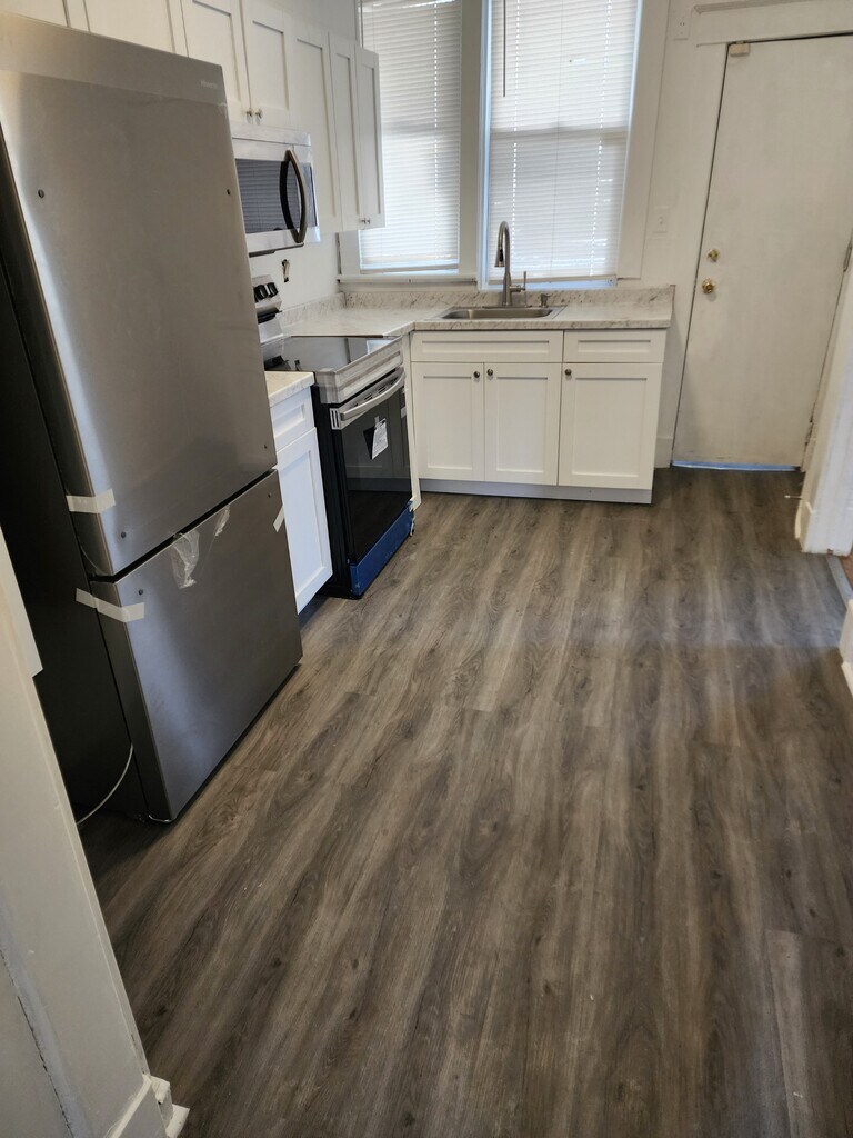 3 Bedroom, 1 bathroom. New Vinyl and hardwood floors throughout. New kitchen appliances. Washer and dryer included.