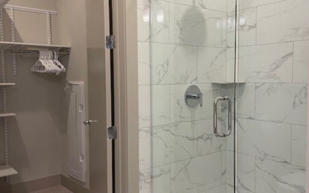 Feel at home in this apartment located near the Battery. This apartment features 7-foot picture windows for gorgeous views and natural light, Nest learning thermostats controlling energy-efficient air conditioning and heating, USB outlets, smart lock entry technology, eco-friendly features including long-lasting LED lighting systems, retractable solar shades and thermally insulated double-pane windows, designer kitchen finishes with marble-effect quartz countertops and custom soft-close cabinetry, custom wood-grain flooring, spa-inspired soaking tubs and/or glass-enclosed separate showers, floating-style vanity cabinets, marble-style ceramic flooring in bathrooms, and an Organized Living freedom Rail Closet System with adjustable and seasonal shelving in bedroom closets. Ceiling fans are in all bedrooms. Amenities include a resort-style pool, fireplace, game room with billiards and shuffleboard, an 8th-floor sky lounge, a dog run and paw spa, and a limited-access parking garage with electric car charging stations. [SI]