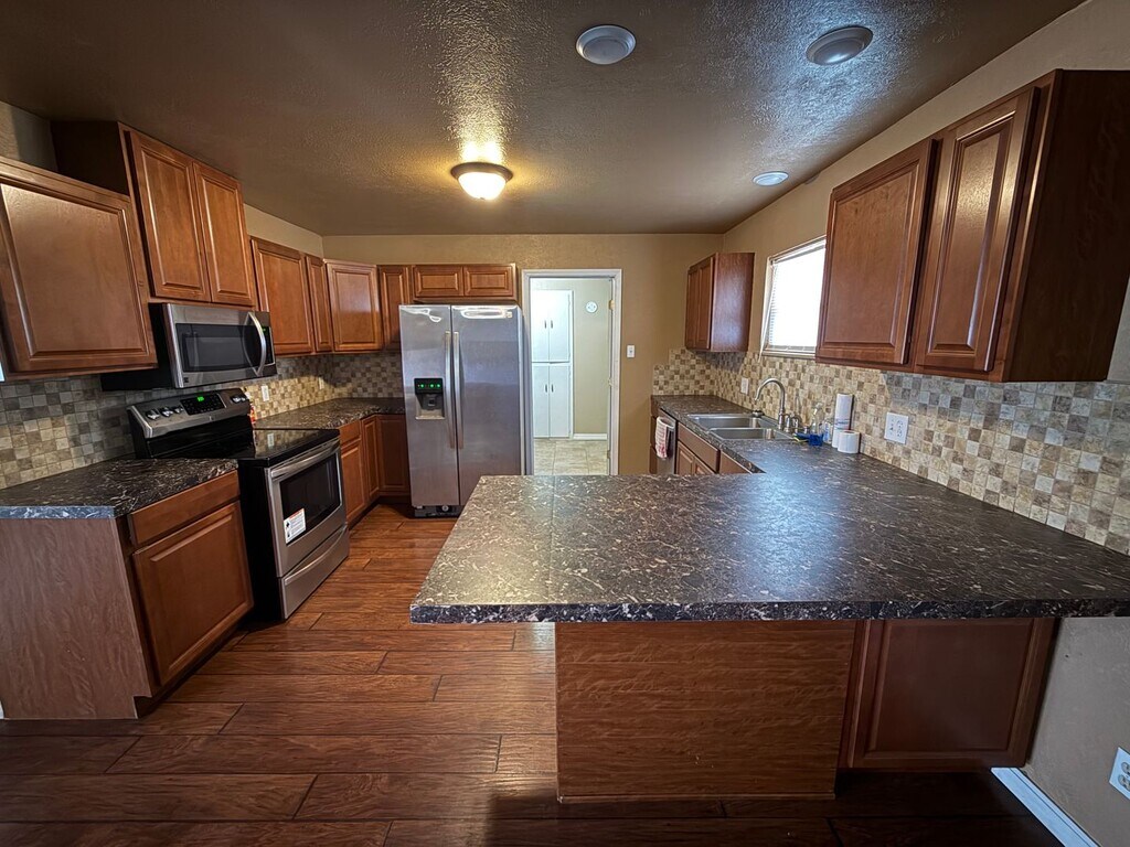 Welcome to the Cozy 3 BDR Home Located in the Sandia School District! This charming home in Clovis, NM, boasts three spacious bedrooms and two full bathrooms. The home is equipped with a two-car garage featuring automatic doors, providing convenience and security. The kitchen is a cook's dream with an electric stove, over-range microwave, and a refrigerator with an ice maker. A dishwasher is also included for easy clean-up. The living area is enhanced by a cozy fireplace and a built-in bookcase, perfect for displaying your favorite reads or decor. The home also features central heat and air, ensuring comfort in every season. The flooring is a beautiful ceramic tile, and ceiling fans are installed in each room for added comfort. The property includes a fenced dog run, making it perfect for pet owners. The laundry room comes with a washer, dryer, and sink for your convenience. The outdoor patio area is perfect for enjoying the New Mexico sunshine. This home is available for a 1-year lease. Don't miss out on this gem in the heart of Clovis!