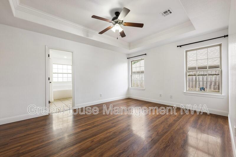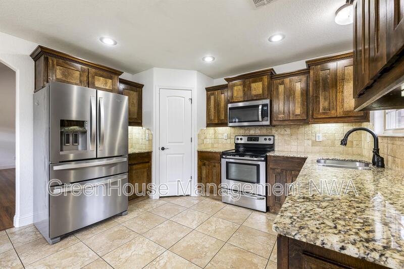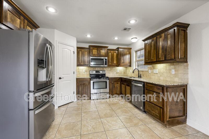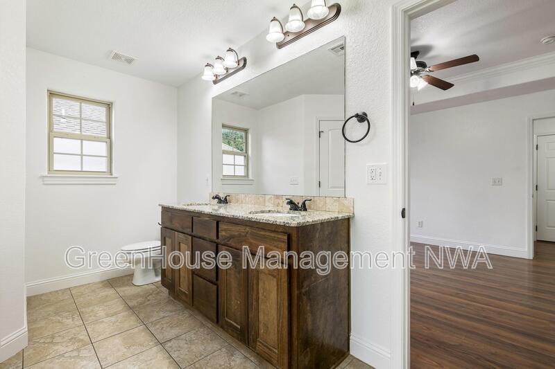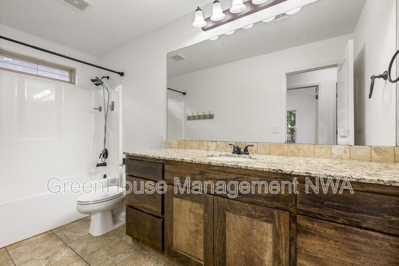 Charming 3-Bed, 2-Bath Home in Riverwalk Farm Estates Welcome to your new home in Riverwalk Farm Estates! This delightful 3-bedroom, 2-bathroom residence offers a perfect blend of comfort and convenience, located less than 10 minutes from the Bentonville Community Center and Walmart home office. The home features a spacious split floor plan for privacy and flexibility, vaulted ceilings that create openness and grandeur, granite counters adding luxury to kitchen and bathrooms, a covered patio perfect for relaxing or hosting gatherings, and a 2-car garage. This wonderful blend of modern amenities and natural charm makes it a fantastic place to call your own in this vibrant and sought-after community. Don't miss out on this opportunity! Schedule a Self-Tour Today. ghm NWA . com More pics coming soon.