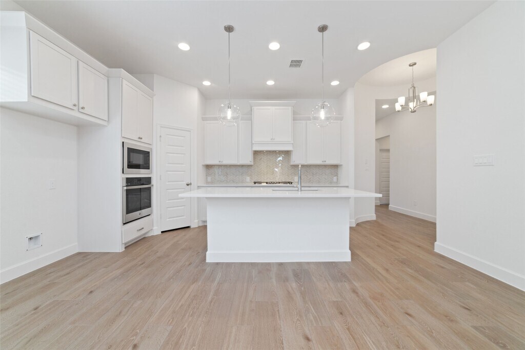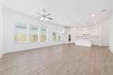 Brand new,never lived in home featuring all-new finishes and new blinds for added privacy. The entry welcomes you with an impressive 11-foot rotunda ceiling leading into an open-concept kitchen,dining,and family room. The kitchen offers a corner walk-in pantry,a 5-burner gas cooktop,and a generous island with built-in seating,perfect for everyday living and entertaining. The primary suite includes double-door entry to a spa-like bath with dual vanities,a separate glass-enclosed shower,and a large walk-in closet. A private home office with French doors is conveniently located near the back entrance. Large windows,extra storage closets,and a functional mudroom enhance this spacious 3-bedroom layout. Enjoy a covered backyard patio and a 2-car garage MLS# 7153258