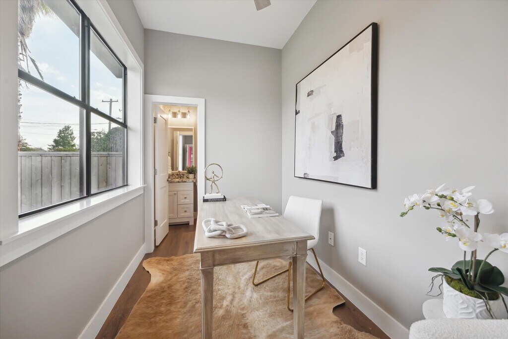 Welcome to 3102 Eunice,a new construction,never lived in,property features two en-suite bedrooms with walk-in showers on the 3rd floor. The 2nd floor offers an open concept living space with abundant natural light and Downtown views. A smaller en-suite bedroom on the 1st floor offers versatility as a home office,exercise space,or craft room. The home also includes Energy Star appliances,tile and luxury vinyl flooring throughout (no carpet!),a fully fenced yard,waterfall island,granite countertops,walk-in closets,and utility closet with washer and dryer included. Zoned to award-winning Travis Elementary,highly rated Hogg Middle and Heights High School,conveniently located near Downtown with easy access to major highways,and walking distance from Heights hotspots,White Oak Music Hall,and the White Oak Bayou Hiking and Biking Trails. Interior photos are not of the subject property. They are from a comparable home with the same floorplan and are for layout reference only. MLS# 80138870