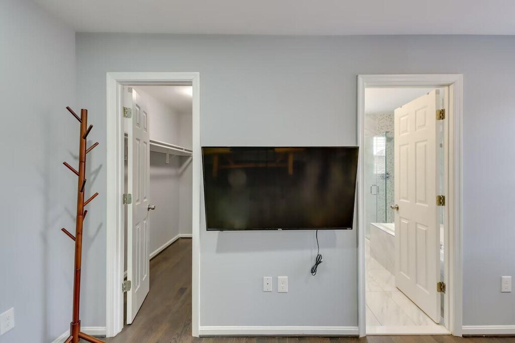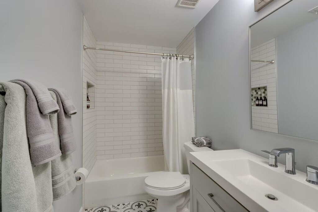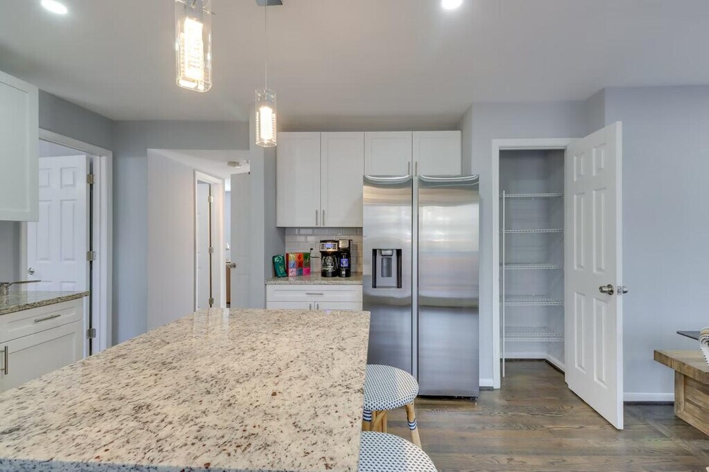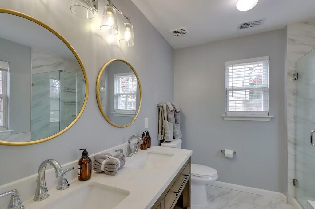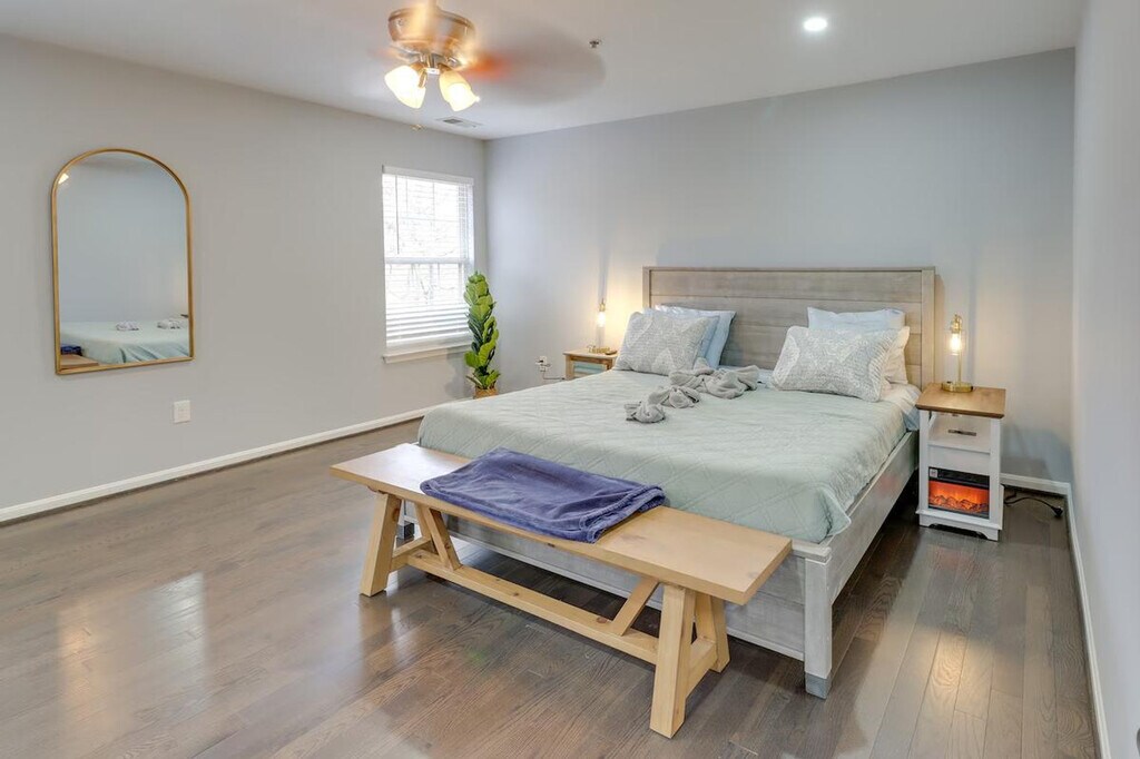 Feel at home in this Cheverly, MD, vacation rental, offering 4-bedrooms and 2.5-bathrooms. This 2-story unit requires using an exterior staircase to enter. This apartment features a sleek and modern interior with stainless steel appliances, a Smart TV, board games, books, a dining table, a breakfast bar, an en-suite bathroom, and a walk-in closet. The kitchen is fully equipped with cooking basics, spices, dishware and flatware, a dishwasher, refrigerator, stove, microwave, drip coffee maker, kettle, and toaster. Additional amenities include free Wi-Fi, central heating and A/C, ceiling fans, complimentary toiletries, linens and towels, a washer and dryer, a clothes steamer, an iron and board, hangers, and a hair dryer. Parking is available in the garage for 2 vehicles and in the driveway for 2 vehicles. Pets are welcome with a $100 fee. Enjoy the shared yard, deck, and gas grill. Make the quick drive into the city to explore the National Mall’s monuments or catch a concert at Capitol One Arena. There are 3 exterior security cameras. Camera 1 is facing out from the front entrance, camera 2 is facing out from the back entrance, and camera 3 is facing out from the side of the home. They do not look into any interior spaces. The cameras record video and sound when activated by motion. A long-term tenant lives on-site in the completely separate unit downstairs with their own entrance and shared amenities, and may be present during your stay. Events, parties, or large gatherings are prohibited. Registration Number: HOU-0496-2023-STR-H [SI]