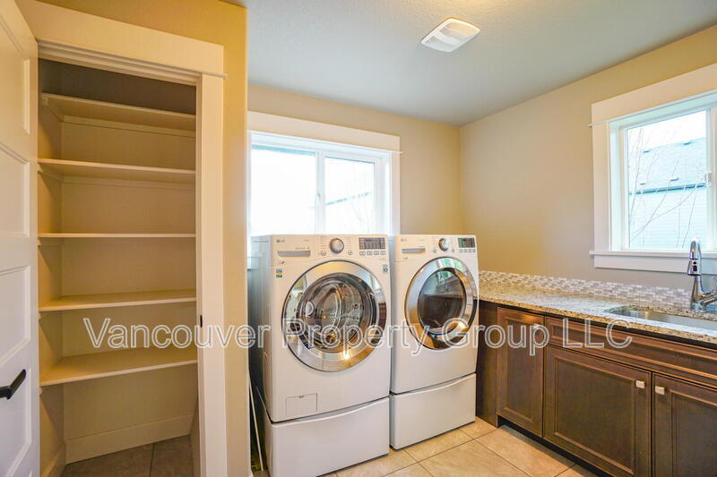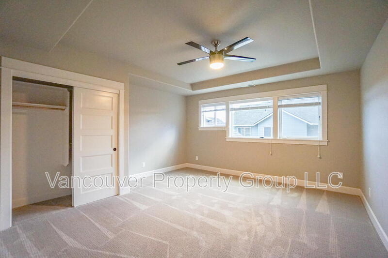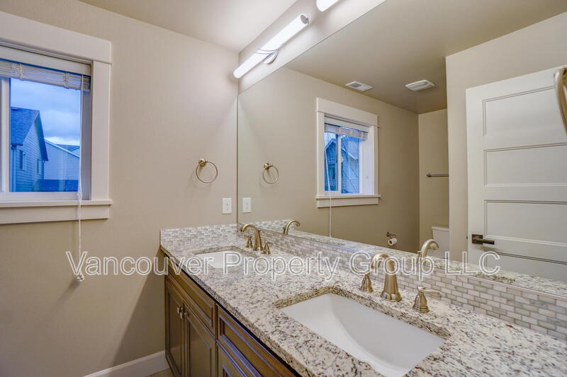 This 2016 two-level Craftsman is tucked into a quiet, well-kept neighborhood just minutes from I-5, the Clark County Fairgrounds exit, and only 20 minutes to PDX and downtown Portland. The home offers four bedrooms and a home office, all within the highly rated Ridgefield School District. This home is truly turn-key and move-in ready. Retreat to the primary suite through double doors and enjoy the comfort of a large walk-in closet, walk-in shower, and deep soaking tub. You'll love the oversized laundry room, complete with sink, granite counters, ample cabinetry, a linen closet, and durable tile flooring. Washer and dryer are provided. The home also features a tankless water heater, central air, and air conditioning for year-round comfort, along with faux wood blinds throughout. The Ring doorbell is already in place. Enjoy the ease of a private, low-maintenance yard with turf in the backyard. With its spacious layout, upgraded finishes, prime location, and exceptional school district, this home represents one of the best values in Ridgefield. The renter is responsible for water, gas, and electricity. No Smoking. Pet Restrictions: 1 cat / or 1 small dog (up to 40 pounds) - $60 pet rent Application Terms & Conditions: No evictions. Income must be more than 2.5x Rent. 650+ credit score. 1 year minimum lease.