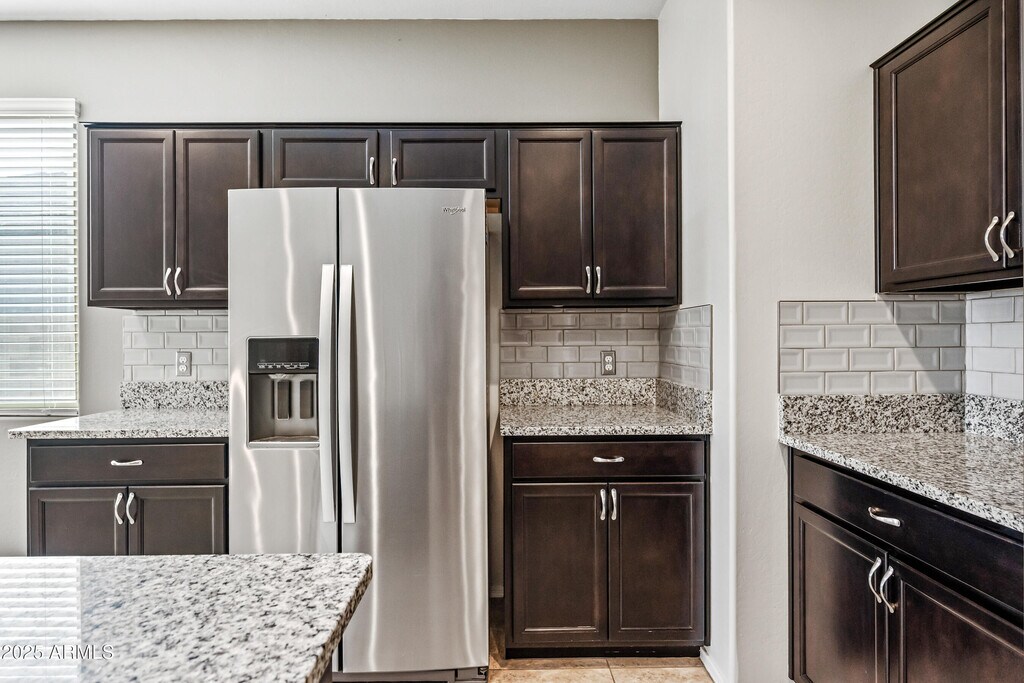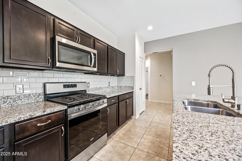 Charming 3 bedroom corner lot property in the Tartesso Community is waiting for you! This beauty offers easy-care front yard,2-car garage,& stone accents on façade. Discover an inviting open floor with designer palette,neutral tile floors,carpet in all the right places,& back patio access. The stunning kitchen showcases granite counters,stylish backsplash,espresso cabinets,SS appliances,a pantry,recessed lighting,& a center island with breakfast bar. Primary bedroom features an ensuite with dual sinks & a walk-in closet. Spend relaxing afternoons in the fantastic backyard with covered patio,colorful landscape,& plenty of space to hang out! Tour today!