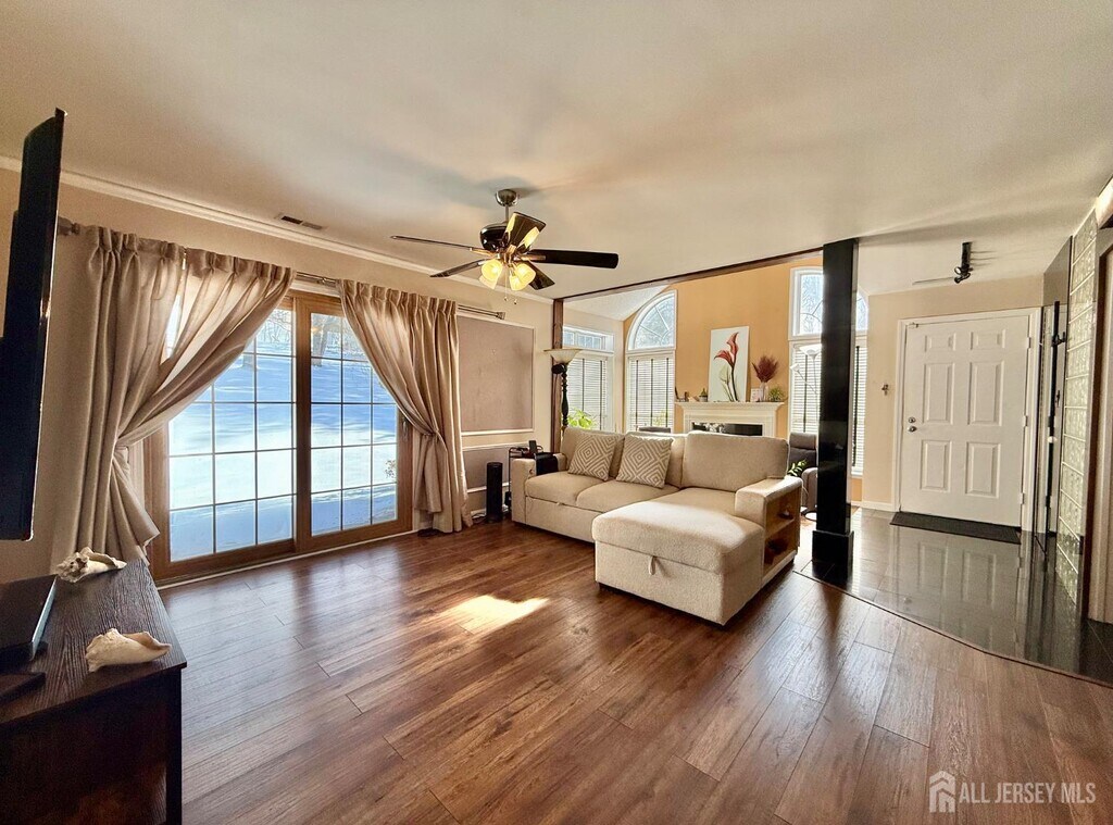 Beautiful semi-attached end-unit ranch in the highly desirable Kingswood Station community,where only a limited number were built. This home offers vaulted ceilings and skylights that enhance the bright,open layout. The sunken living room features a gas fireplace and multiple windows that provide abundant natural light. Enjoy meals in the dining room and prepare your favorite dishes in the eat-in kitchen with a breakfast bar. The primary bedroom includes a walk-in closet and a private bath. A well-sized additional bedroom,laundry area,and main bath complete the interior. Sliding glass doors from the family room lead to a patio with scenic views. Community amenities include a clubhouse,an outdoor pool,a playground,a jogging path,and tennis courts. Convenient access to Route 18,Route 1,the NJ Turnpike,Downtown New Brunswick,Rutgers University,and nearby hospitals. Close to houses of worship,NYC buses,shopping,dining,and recreation. Located within the Warnsdorfer Elementary School district and East Brunswick's award-winning Blue Ribbon schools. Available March 1,2026.