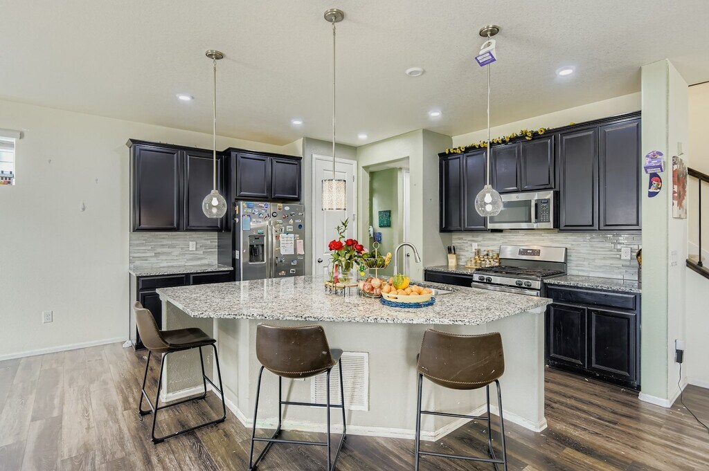 Welcome to 3103 Jonquil Street, a contemporary home nestled in the heart of Castle Rock’s most desirable neighborhood—The Meadows. Built in 2021, this stunning property offers 2,372 square feet of modern living space, featuring 4 bedrooms, 2.5 bathrooms, and a dedicated office—perfect for working from home or additional living flexibility. Step inside to discover an open-concept main floor that seamlessly connects the living, dining, and kitchen areas. The beautifully appointed kitchen boasts stainless steel appliances, a large granite island, a pantry, and engineered hardwood floors throughout the main level. Large windows fill the home with natural light, creating a warm and inviting atmosphere. Upstairs, you’ll find a convenient laundry room (W/D included), a full bathroom, and three spacious bedrooms—two of which feature walk-in closets. The expansive primary suite offers serene open-space views, a five-piece bathroom with dual vanities, a soaking tub, and a generous walk-in closet—your perfect private retreat. Outside, enjoy a well-maintained yard ideal for outdoor gatherings or simply relaxing in the Colorado sunshine. The open-space lot sits across the street from a community park, and the attached garage provides convenient parking and additional storage. The Meadows community offers pools, parks, playgrounds, and miles of scenic trails. Shopping at the Outlets at Castle Rock and quick access to I-25 make commuting to Denver, the Denver Tech Center, or Colorado Springs a breeze. Schools: Meadow View Elementary, Castle Rock Middle, Castle View High. Additional Information: - Rent: $3,295/month - Tenant Pays: All utilities (electricity, water, gas, internet, cable, lawn/yard maintenance & pest control) - Pet Policy: Dogs welcome — no pet fees or pet deposit - Resident Responsible For: Watering and maintaining both front and backyard landscaping, including replacing any dead grass, trees, or shrubs - Restrictions: No smoking indoors - Owner Pays: HOA