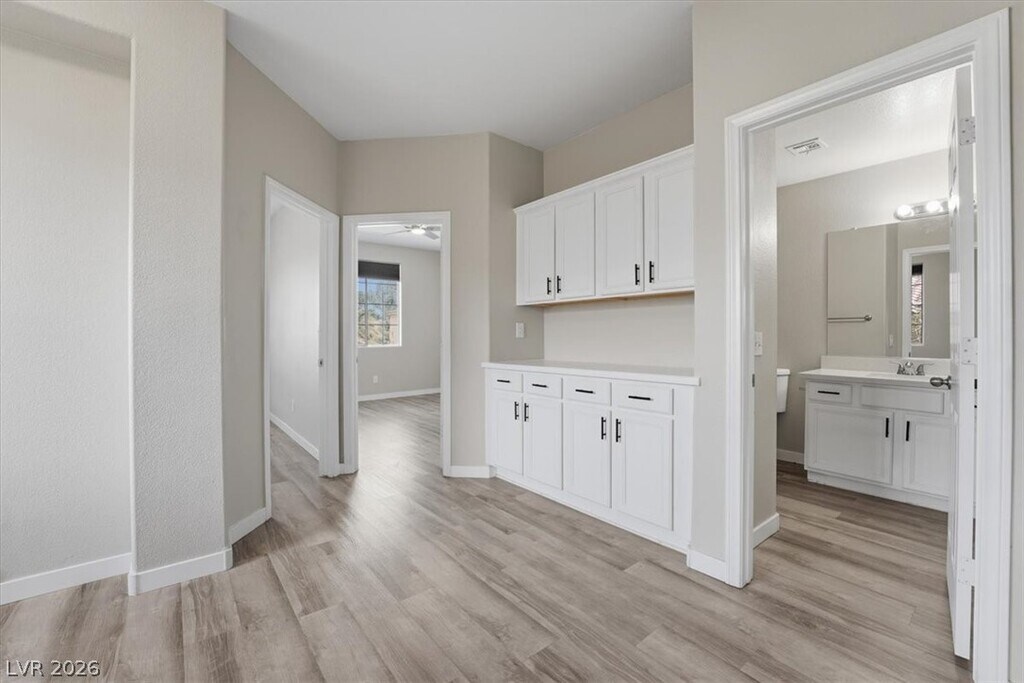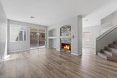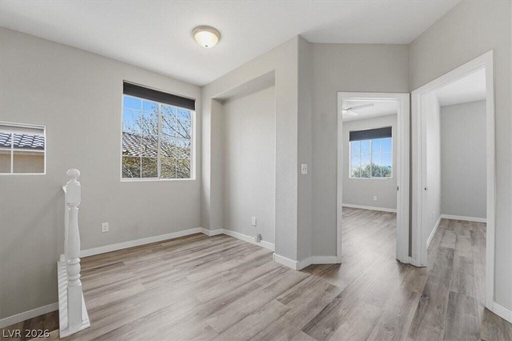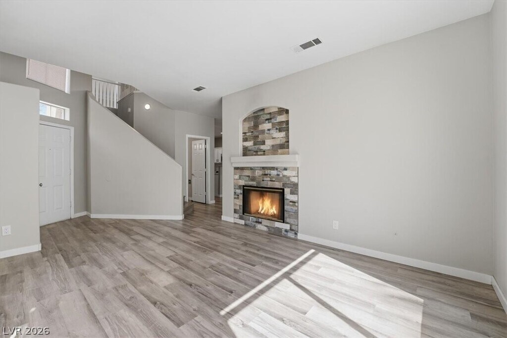 Don't miss this spacious and well-updated 3-bedroom, 3-bathroom townhome located in the gated Terraces community of Seven Hills. This 1956 sqft home has been upgraded with an interior that features waterproof laminate flooring throughout, 4-inch baseboards, and a great floor plan that includes both a living room & family room separated by 2-sided fireplace — giving you plenty of flexible living space. The kitchen has been refreshed with newer quartz countertops, freshly and Samsung stainless steel appliances. Upstairs you'll find 3 bedrooms, a convenient workspace area, and a primary suite with a massive retreat that works great as a home office, gym, or nursery. All bedrooms have new remote-controlled ceiling fans. New outlets throughout living spaces. Out back, the low-maintenance patio is a great spot for grilling and relaxing without a lot of upkeep. The HOA takes care of the front yard. Just a short walk to the only community pool in Seven Hills!