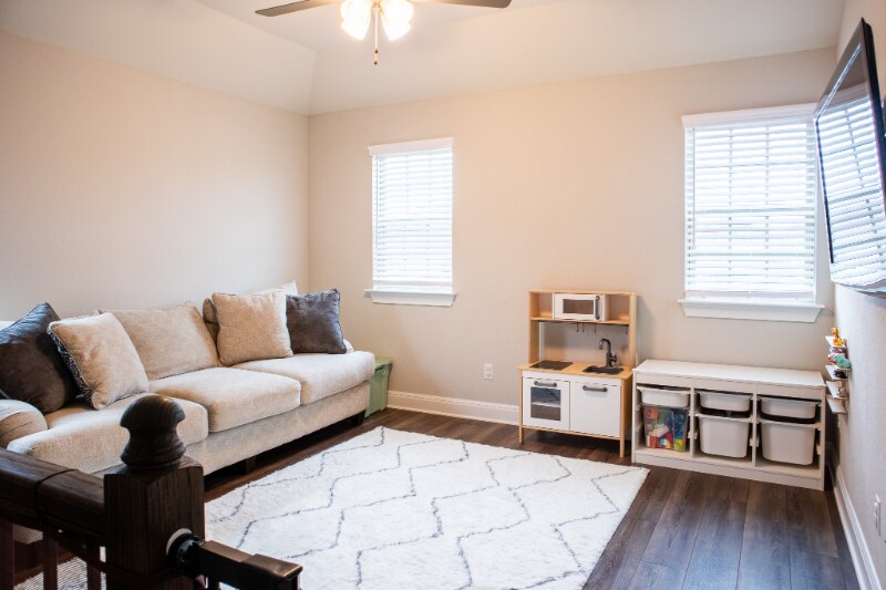 Property Id: 2249174 Beautiful 4 Bedroom, 3 Bath Home - Modern Upgrades & Prime Location Welcome to this spacious 4-bedroom, 3-bath home offering 2,346 sq ft of contemporary living. Conveniently located near HWY 45 and I-35, this home blends comfort, style, and everyday convenience. Inside, you'll find an open layout and a modern kitchen with built-in appliances, including a microwave, oven, and refrigerator. The home features no-carpet flooring throughout, perfect for easy maintenance. The primary suite offers a luxurious rainfall shower, creating a spa-like experience at home. Step outside to an extended covered patio, ideal for entertaining or relaxing. The 2-car garage includes an EV charging outlet, offering added value for EV owners. Located in a vibrant community with great amenities, you'll enjoy access to a community pool and basketball court just moments away. Renters are responsible for all utilities. No smoking inside. One small dog (< 40 lb) allowed with a nonrefundable deposit and monthly rent. Minimum of 12 month-lease, month-to-month thereafter. Longer lease available. Lawn care and HOA included in the rent but renters must leave the sprinklers on to water once a week.