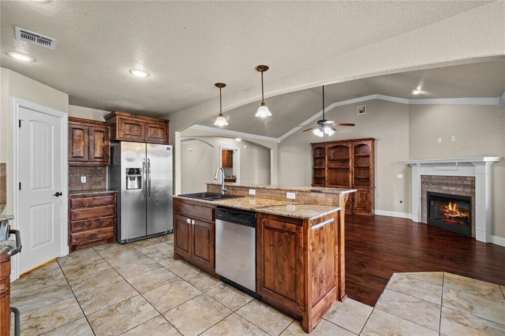 Amazing move-in ready home in great, convenient location. This 4 Bedroom, 2 Full Bath home in Riverwalk Farm Estate has hardwood floors, custom cabinetry, granite counters, stainless steel appliances, walk-in pantry, tons of storage including custom built-ins, gas log fireplace, large Owner's suite with tray ceiling. Refrigerator included. Privacy-fenced backyard. TORNADO SHELTER. 0.3 miles to Osage Creek and Creekside schools. Short drive to XNA & shopping. MLS# 1321595