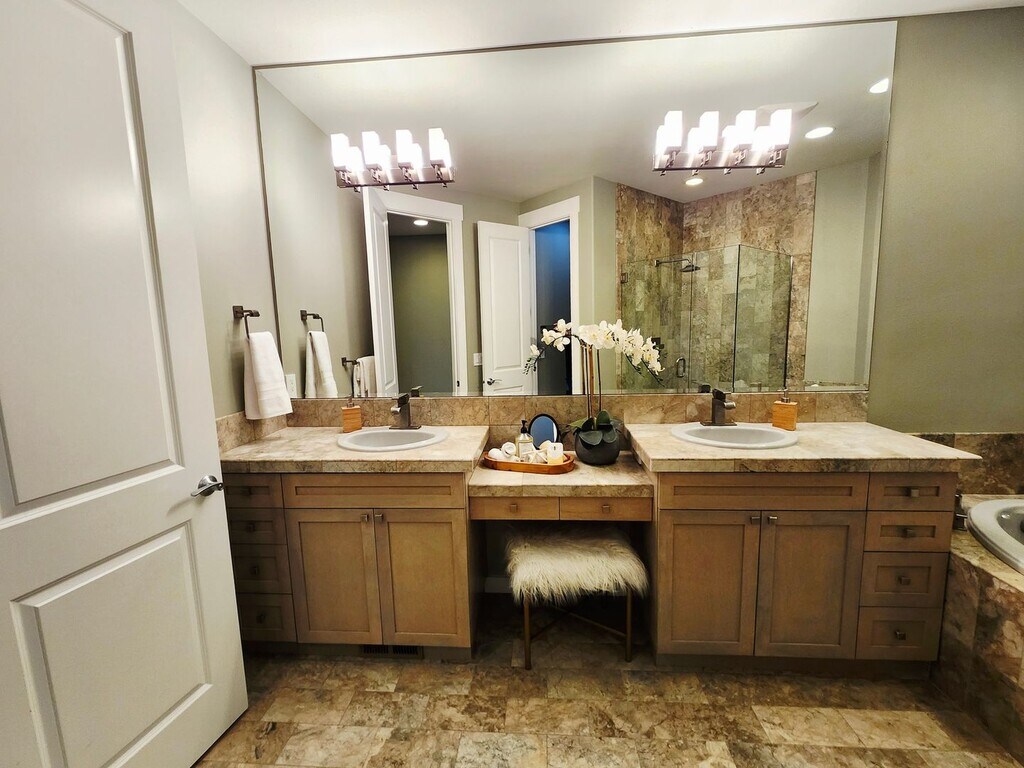 Luxury & relaxation meet at this stunning 3-bedroom, 4-bathroom home located on the Columbia River in N. Richland. This property boasts a range of high-end amenities designed to enhance your living experience. Inside, you'll find a kitchen equipped with granite countertops. The living area is enhanced by a gas fireplace, providing a cozy atmosphere during cooler months. The home also features marble countertops in the bathrooms, adding a touch of elegance. The home features 2 river-facing primary bedrooms with en-suite bathrooms. Upstairs you'll find an oversized loft/office space in addition to a family room with theater features included along with the 3rd bedroom and ensuite bathroom. A covered patio with amazing views of the river is perfect for outdoor relaxation. The underground sprinklers and included lawn care ensure a lush, green landscape with minimal effort. An additional perk is the central vacuum system for easy cleaning. The 2-car garage comes with an automatic openers. Experience the perfect blend of luxury and comfort in this luxury N. Richland home.