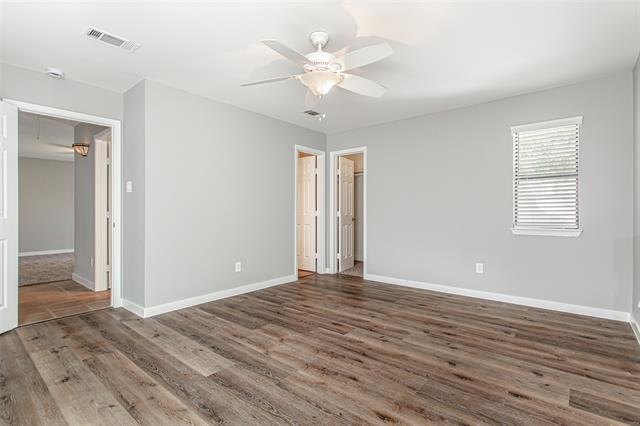 MOVE IN READY in the highly sought after Spring Park community with walking trails, Olympic-sized swimming pool, tennis and pickle ball courts, fitness center, private lakes and mature trees all throughout the neighborhood! Nestled in a cul-de-sac near a walking path, play area for kids, and private lake. Versatile floor plan with 3 beds, 2 baths, and a flex space across the primary bedroom that could be used as a second living area, study, or exercise room. Newly updated with fresh paint throughout the home and cabinets, newly installed carpeting, new fixtures and door handles, new microwave. Such a GREAT location just minutes from HWY 190 and close proximity to so many shops and dining choices! Zoned Richardson ISD. Small pets accepted under 35lbs. Non refundable application fee of $60 for all adults 18+. Please request a copy of the application coversheet that must be reviewed and signed by all applicants.