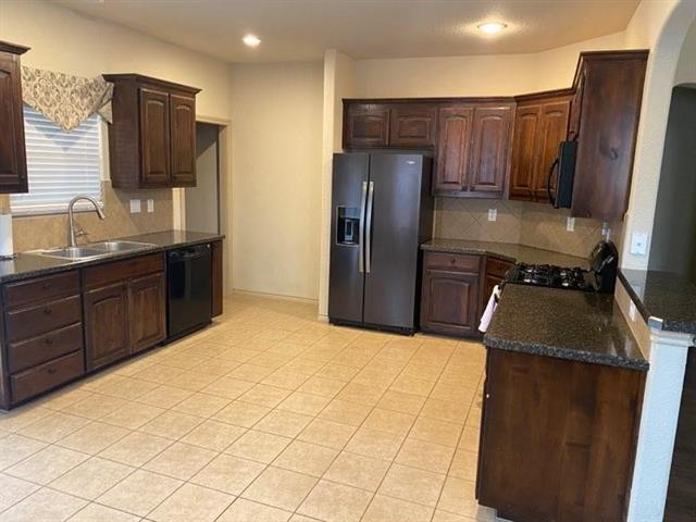 Great home, charming location desirable Central Village Estates. Awesome plan flows openly from entry to large living and on to Gracious Open Kitchen and Dining area which view large covered patio, shaded rear yard with large tree. Kitchen offers black appliance package, gas range, stained cabinetry, plenty of room for a portable island if desired as there is extra area for mobility in this great home with such an open floor plan. Walk-in pantry w- laundry room-very spacious and this area includes a doggie door to rear patio. Updated in last year-faux wood type flooring throughout most areas. Ceramic tile in kitchen and baths, entry. Master has custom built barn door and Master Bath was built large and open for wheelchair access with wide openings and huge shower and walk in closet. Garage is oversized w-custom built in storage, sprinkler system. Available Now so don’t wait on this charmer!