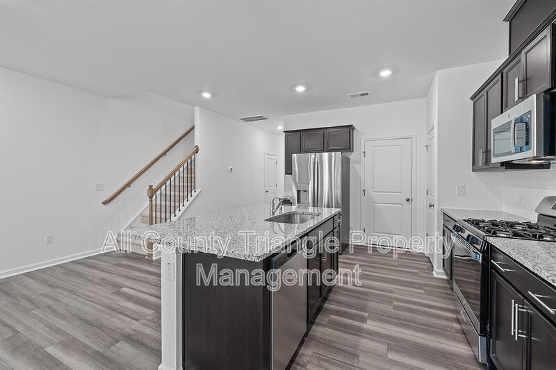 Welcome home to this sophisticated, new-build, two-story townhome that showcases a modern open floor plan on the first level, featuring a high-spec kitchen with SS appliances, gas range, and a large granite topped island. The gourmet kitchen opens to a spacious great room with 9-foot ceilings – a perfect layout for both entertaining and private living. Upstairs discover the generously proportioned master suite, a haven of tranquility equipped with a luxurious en-suite bathroom with walk-in tile shower and spacious closet. Two additional bedrooms, a second full bathroom, and laundry room with included W/D round out the top level. Ring doorbell camera pre-installed, and garage includes an EV charger plug. Easy access to Duke University and the vibrant Durham downtown via 501, I-85, 147, and 885. Subject to approval, pets allowed w/ pet rent & additional deposit. No smoking. An application is required for all occupants age 18 and older with a $55 non-refundable fee required for each applicant. A credit, background, and eviction check as well as employment, income, and rental history verifications are completed on all applications. Security deposit required is determined based on the application screening results. In addition to the application fee, a $5 monthly credit reporting fee is required for reporting of rental payments to credit bureaus.