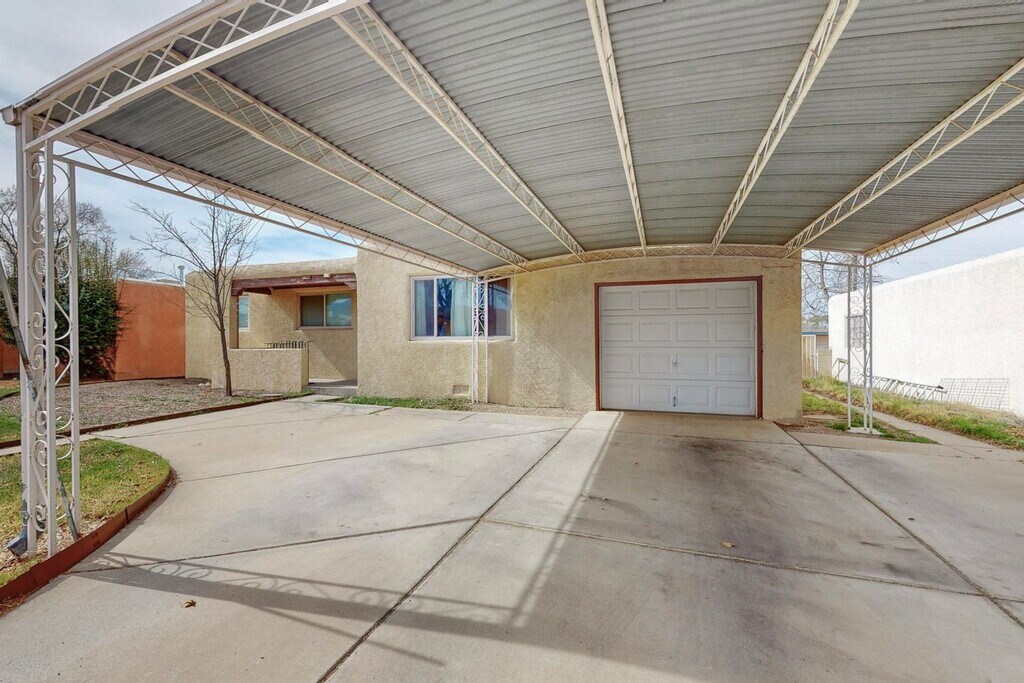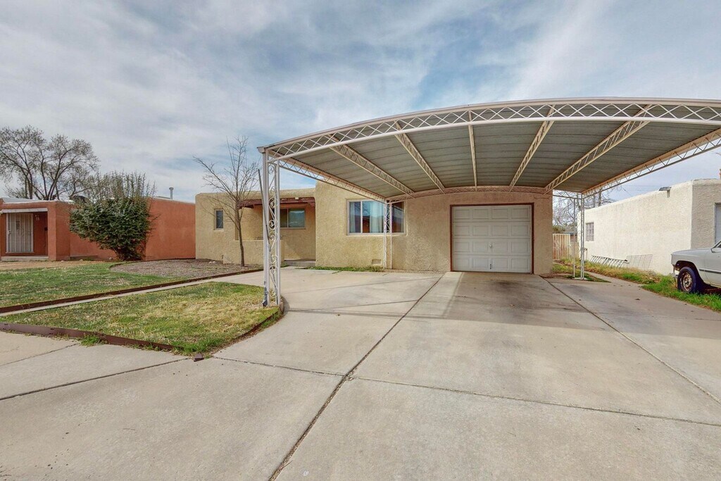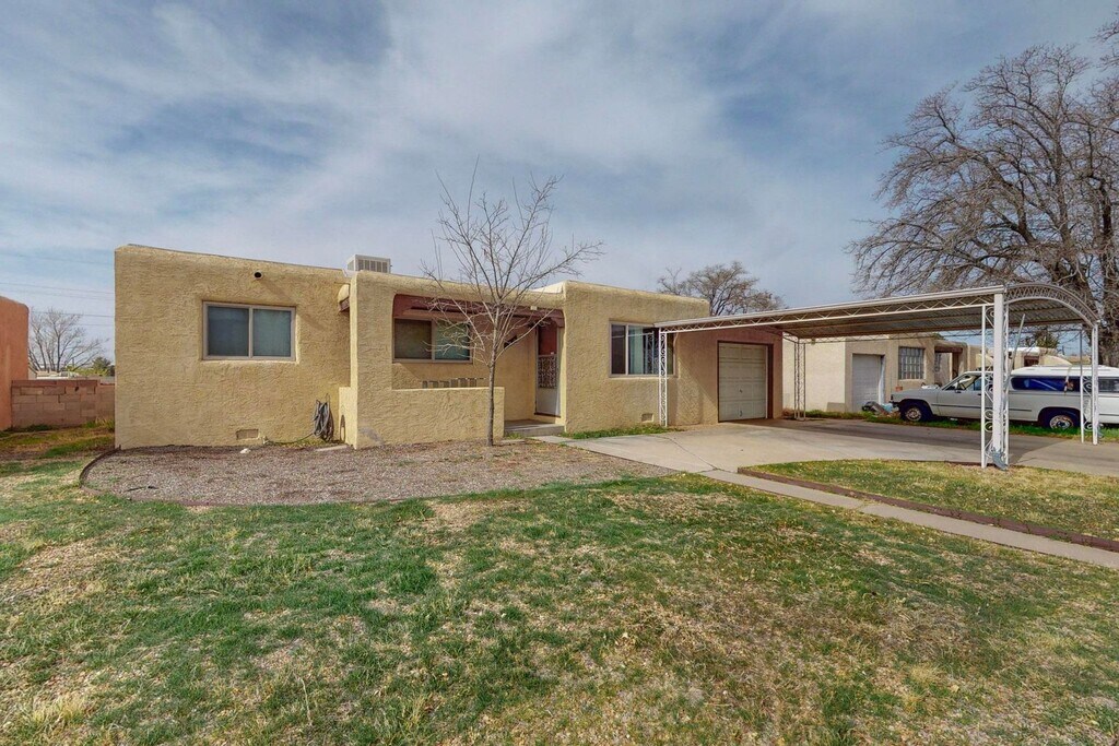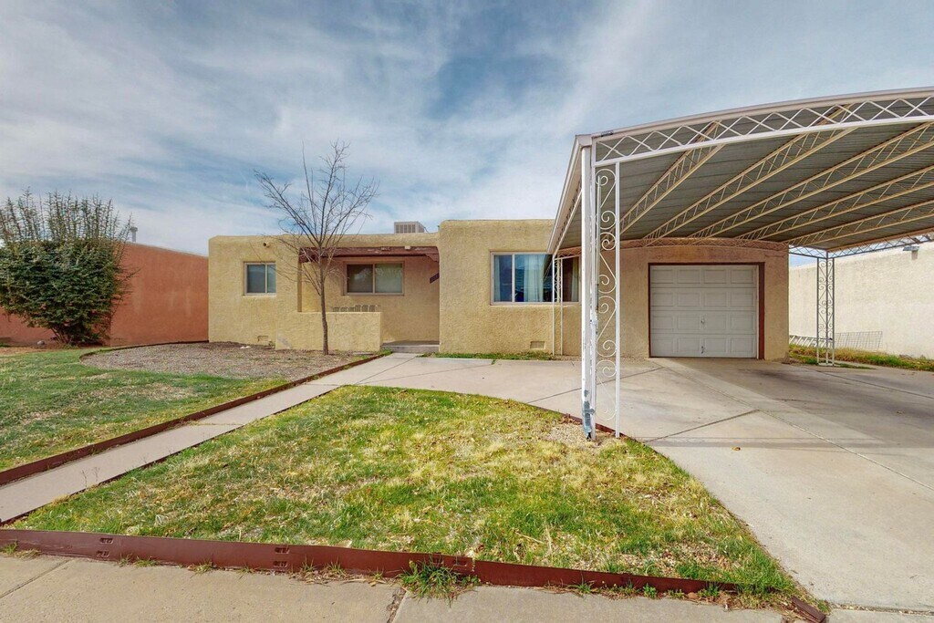Southwest Pueblo style 1774/sf home. Sunny living room with hardwood floors throughout, formal dining, kitchen with upgraded stainless appliances, laundry room, three good size bedrooms, primary bedroom with walk-in shower, main bath in the hallway.Covered Carport. Hugh backyard. Parks, pathways around the corner. No Smoking, licensed Pets negotiable with pet fee. Tenant pays all utilities and renters insurance. APS School Service Areas Elementary School: BEL AIR Middle School: MCKINLEY High School: DEL NORTE To schedule a viewing and for the rental application go to