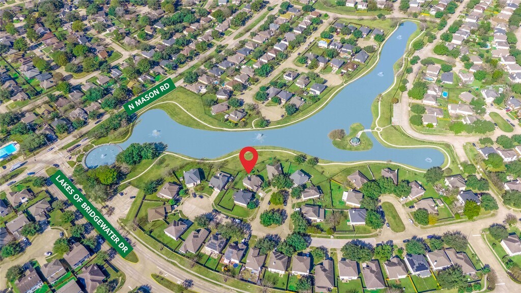 Located on a tucked away cul-de-sac in Lakes of Bridgewater,this well maintained home offer three bedrooms,2.5 baths,and nearly 2,300 sq. ft. of functional living space. The main floor features durable wood-style flooring and an open layout that makes the living and dining areas feel connected and spacious. The kitchen includes quartz countertops,stainless steel GE appliances,an updated sink,pantry storage,and plenty of counter space for everyday use. The primary suite is on the first floor and includes two walk-in closets,dual vanities,a soaking tub,and a separate shower. Upstairs,you'll find a large game room along with two secondary bedrooms that work well for guests,home offices,or flex space. The backyard opens to tranquil lake views and a covered patio,creating a relaxing outdoor space. Convenient access to nearby schools,shopping,dining,and major commuter routes. MLS# 40163988
