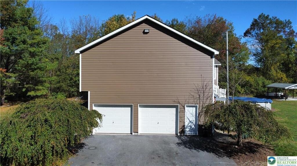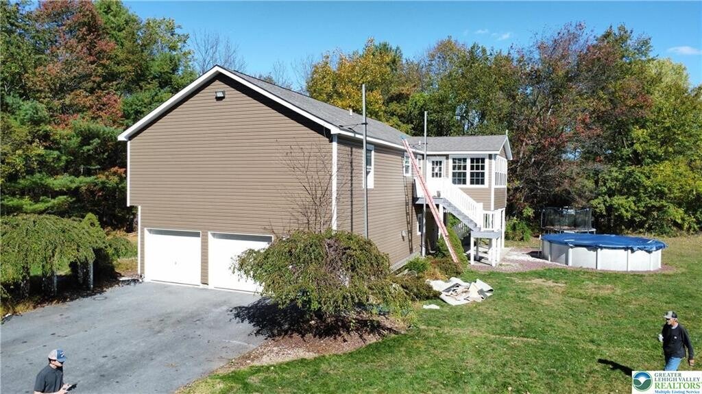 Discover serenity in this 3-bedroom, 2.5-bathroom bi-level home on 15 tranquil acres in Moore Township ready to occupy mid October 2025. Ideal for those craving peace, it features an oversized 2-car garage, a spacious lower-level rec room with a half bath, and slider doors to a covered patio with an above-ground pool. Upstairs, enjoy new luxury vinyl plank flooring, fresh bedroom carpeting, a dining room off the kitchen, and a cozy family room with a fireplace. Two full bathrooms include one in the main hall and one in the primary bedroom. Tenant handles all utilities and pool maintenance if used. Experience modern comfort in a private rural haven!