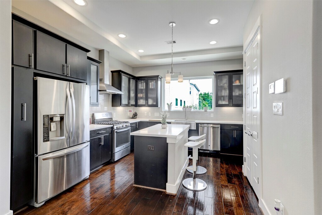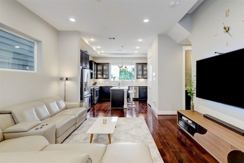 Stunning single-family home in the heart of Houston,just steps from East River and minutes to downtown attractions,stadiums,the Metro Rail,and more! This beautifully designed home offers an open-concept layout with three spacious bedrooms—each with its own en-suite bath and oversized closet. Features include a two-car attached garage with custom built-in storage,quartz countertops,wine fridge,built-in library with custom lighting,IQ smart panel with sensors on all entry points and MyQ smart garage opener. Enjoy rich hardwood floors,a private balcony,and thoughtful upgrades throughout. Washer,dryer,and refrigerator are all included—making this move-in ready home an unbeatable value. Schedule your private tour today! MLS# 79614583