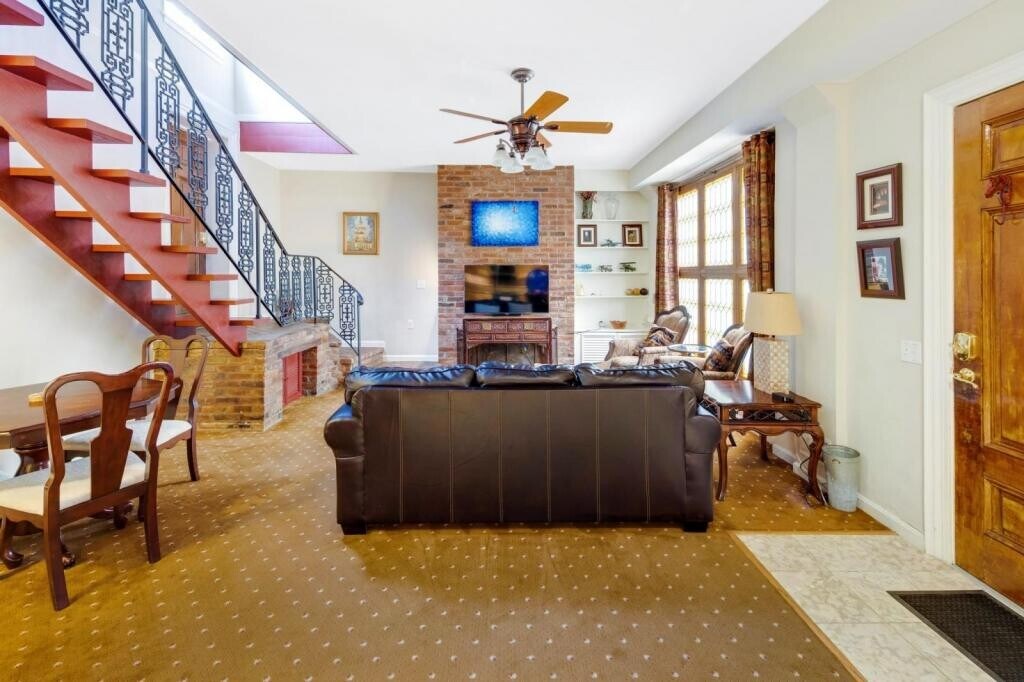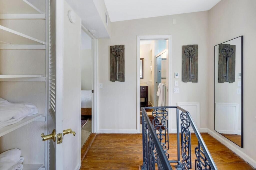FULLY FURNISHED CAN BE SHORT TERM ALL UTILITIES INCLUDED. 31 day minimum rental. This is a Capitol Hill Stay property. We are a veteran owned small business, providing lodging since 1997. This is our sole source of income. We support two extended families on this income and we appreciate your interest very much. You can see all 20 of our places at our main website. LINK: Capitol Hill Stay is a veteran owned small business providing furnished short term apartments in DC since 1997. We have two dozen places. Contact us for more info. This million-dollar carriage house is stunning. Originally built to house horses and carriages on the first floor, and carriage equipment on the second, it sits on the quiet back of a gorgeous lot, on a charming block. It makes for a very private furnished housing experience, whether short term or extended stay. The layout is open and flexible. Private parking five feet from the door. First floor is open space with renovated kitchen, stained glass window, custom brick, and wrought iron staircase. Huge kitchen with lots of counter space, great appliances, Washer/Dryer, and dedicated dining and workspace area. Heated marble floors and half bath on first floor. Upstairs you'll find open loft bedroom with huge window that lets in plenty of great natural light, french doors and original hardwood floors. Second bedroom or office (Has futon and desk workspace). Upstairs bath has nicely tiled shower with heated floors. Direct access to beautifully landscaped common courtyard and huge roof-deck. See all of our places at