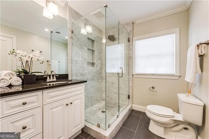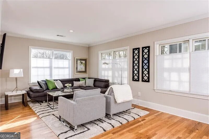 Beautiful and renovated 3-bedroom 2 bath home with great walkability to the International School, shops & dining, this completely renovated home is larger than it looks, with separate living room & great room in the rear; screened-in porch, and HUGE deep yard. Light-filled kitchen with double ovens; great room w/bar are complete with wine fridge; larger master has two walk-in closets and a gorgeous bath with frameless glass shower, double vanities.
