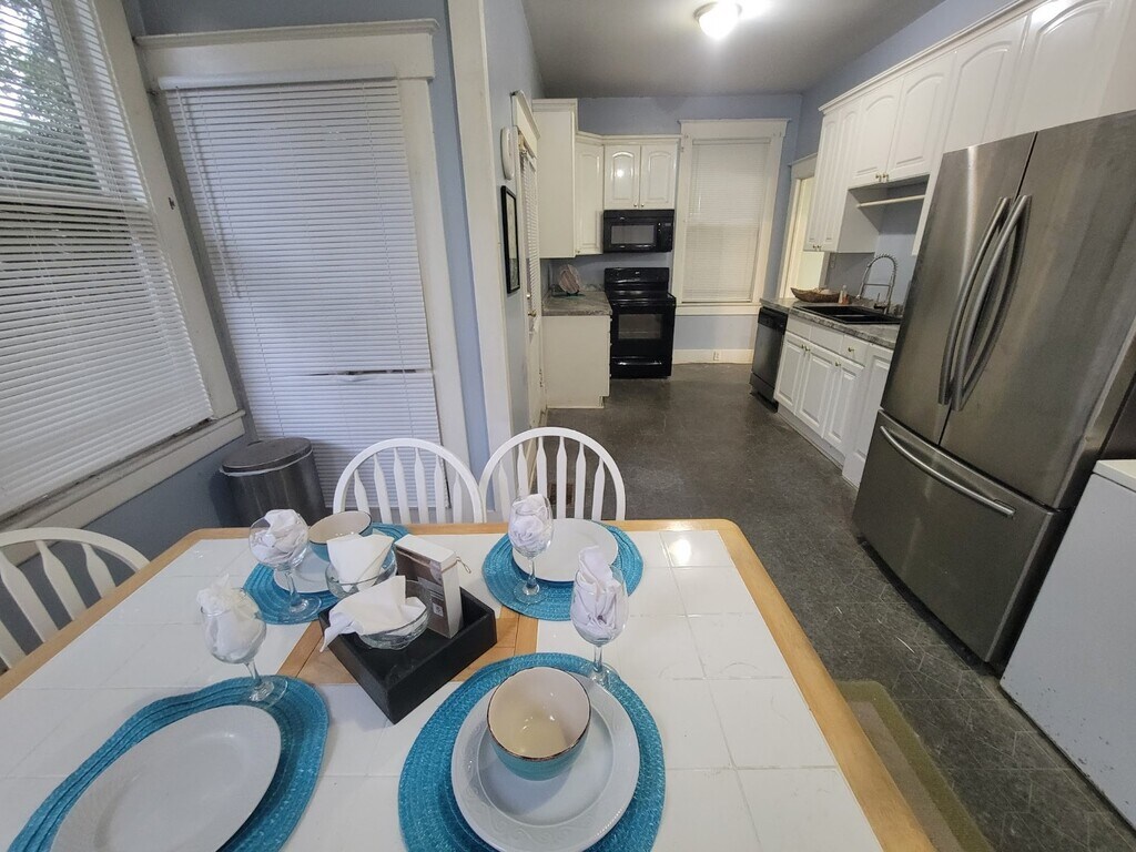 Victorian home converted to a duplex. driveway, fancy kitchen, microwave, dishwasher, French door fridge, ice-maker, covered front porch, covered back porch, fenced yard, old weathered wood floors, central heating and air with wifi thermostat. Victorian historic district next to SCAD buildings and Elizabeth's on 37th