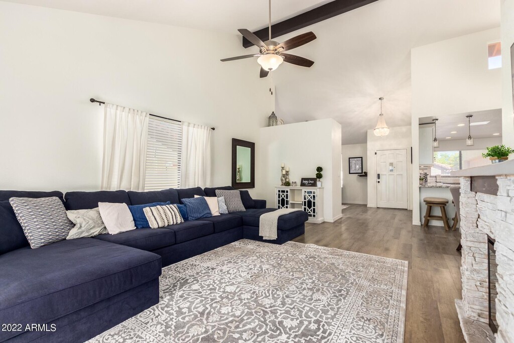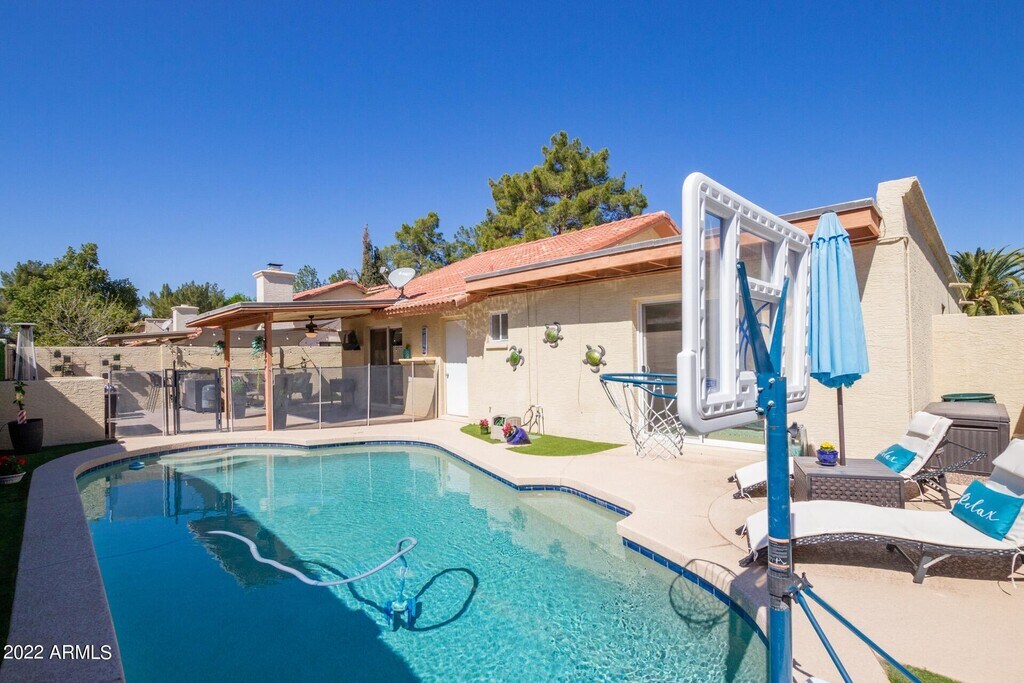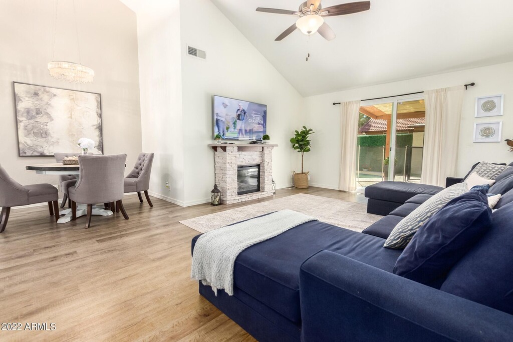 Come and see this beautifully renovated,spacious home located in the heart of the Historic Downtown Gilbert. Less than 1/2 mile to dozens of shops,great restaurants,bars,& night life! This furnished home boasts an open kitchen,living room,and family room with cathedral ceilings. The master bedroom has a private outdoor access,bath with dual shower,and walk in closet. This home is well equipped with furniture,bedding,bathroom essentials,TV's,appliances,kitchenware,decor,& attached 2 car garage. Backyard paver patio with grass play area,built-in BBQ grill,granite counter,outside heater,fire-pit & refreshing pool perfect for the warm summer days! Community grounds include lush greens,shade trees,and 2 playgrounds to entertain all ages.