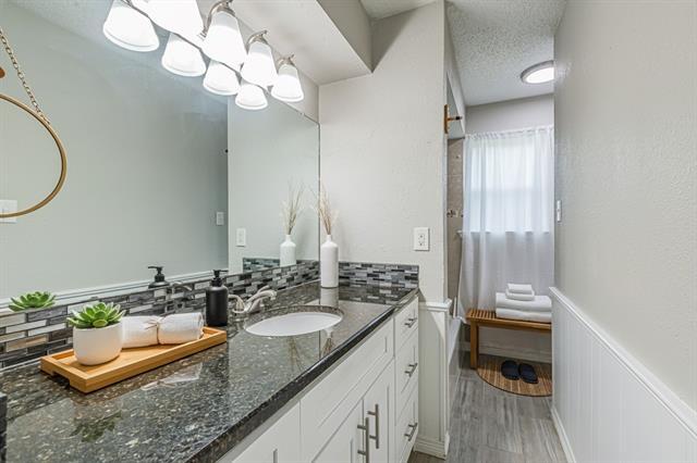 Beautifully updated 3-bedroom, 2-bath home in highly sought-after Oakridge Park. Spacious open floor plan with cozy family room and galley kitchen featuring granite countertops and stainless steel appliances. Bright breakfast area and large primary suite with private bath. Plenty of storage throughout. Oversized garage and long driveway with room for up to four cars. Big backyard perfect for entertaining or play, plus mature trees and ample outdoor space. Minutes from Lake Lewisville, shopping, restaurants, golf, soccer fields, and trails. Just one minute from I-35E for an easy commute.