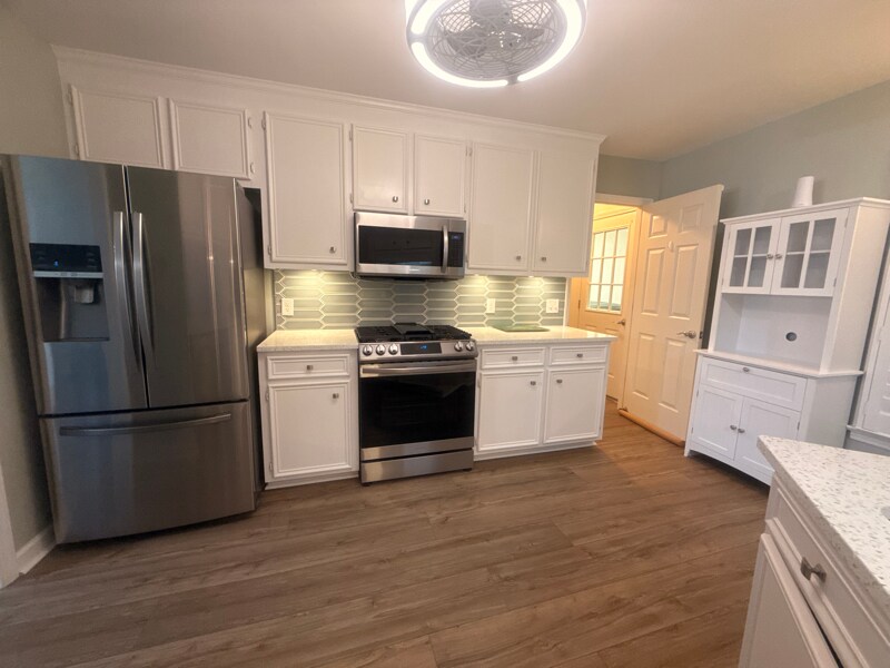 Property Id: 2425780 Three bedroom 2.5 bath one car garage end unit townhouse located on a quiet and wooded cul-de-sac. Newly remodeled with new appliances?, counter tops and flooring. Fenced in back deck. Washer and dryer available for an additional $50 per month.