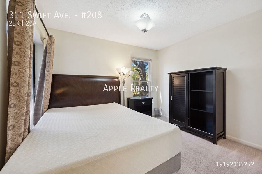 311 Swift Avenue Unit 208 (Campus Oaks) $1400.00 with a one year lease. This 2nd Floor end unit has lots of natural light and features two bedrooms, two full bathrooms, and a spacious family and dining area. The kitchen offers ample space, with granite countertops, Range, Refrigerator, Dishwasher, a pantry, and plenty of cabinets. Additionally, the unit comes mostly furnished, including a washer and dryer. Central Heat & Air (All Electric). Water is included in the rent. Fantastic location near Ninth street, Duke Hospital & Duke University. This property is conveniently located near dining, shopping, and entertainment options. You can easily walk or take the bus to Duke University, and a city bus stop is nearby.