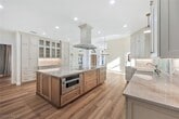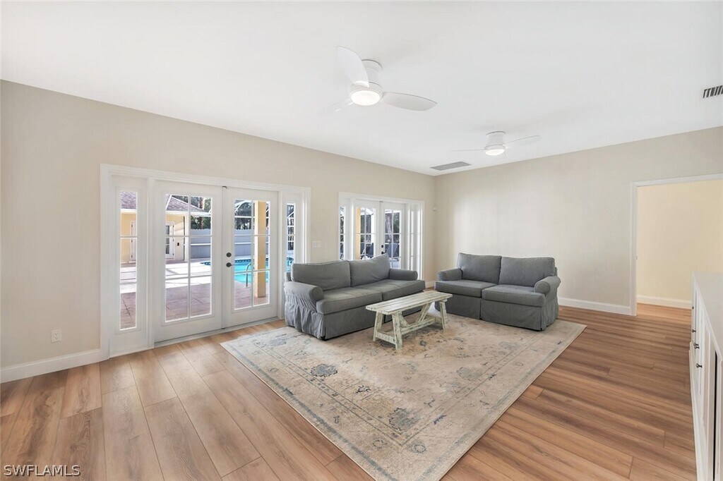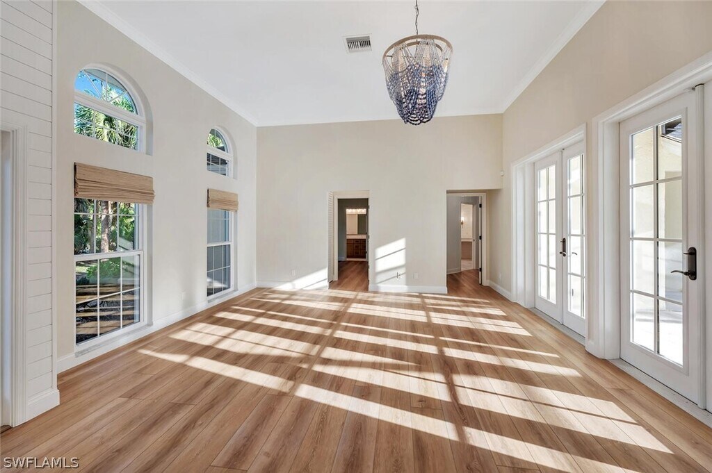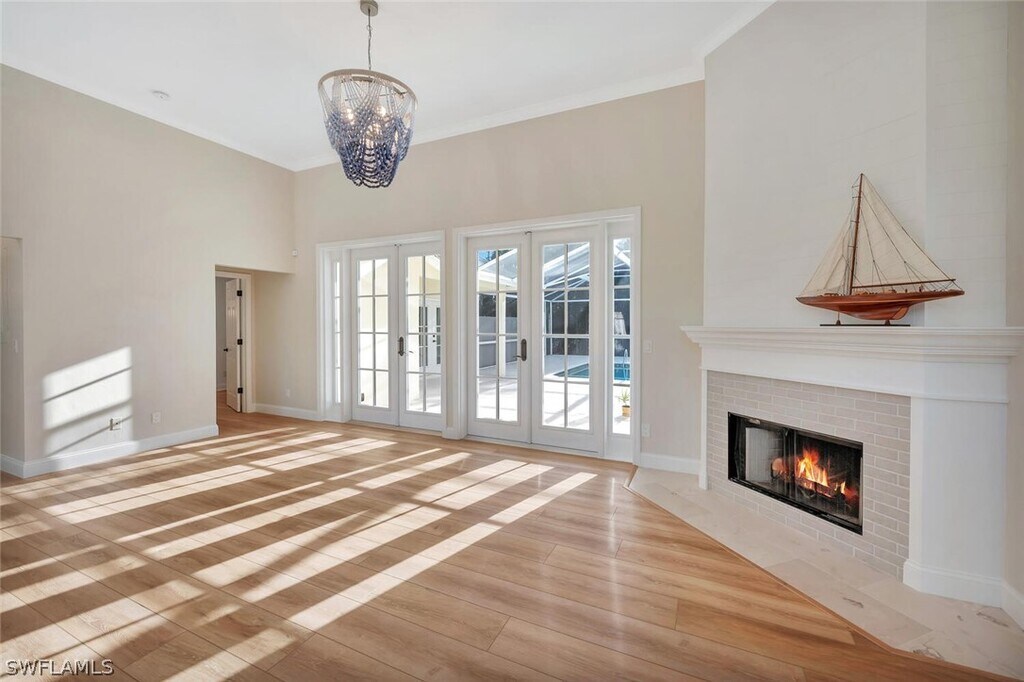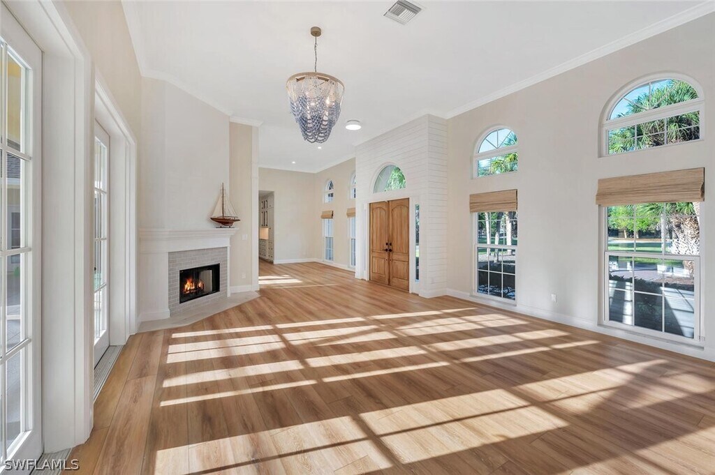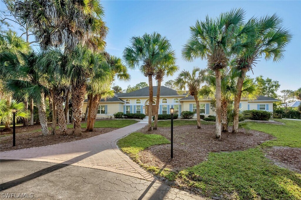 Set on nearly three acres,this exceptional 5 bedroom plus den,4 bath estate captures the essence of luxurious Naples living. Offered unfurnished as an annual rental and available immediately,this stunning residence is ready to welcome you home. From the moment you enter,you’ll be impressed by the thoughtful design and refined finishes,including wide-plank wood flooring,soaring volume ceilings,and contemporary lighting throughout. The light-filled living room features a charming brick fireplace and double doors that open seamlessly to the pool area,creating an effortless indoor-outdoor lifestyle. The chef-inspired kitchen is truly the heart of the home,showcasing stainless steel appliances,custom cabinetry,a wine refrigerator,double wall ovens,Taj Mahal quartzite countertops,a walk-in pantry,and a spacious island with an induction cooktop—perfect for entertaining. The adjacent dining area is highlighted by a large picture window overlooking the serene outdoor oasis,while a cozy family room with built-in cabinetry and ceiling fans provides an inviting space to gather. A dedicated home office offers the ideal setup for remote work or quiet study. The elegant primary suite features stylish shiplap accents,a walk-in closet,and direct access to the pool. The spa-like primary bath is designed for relaxation,complete with marble floors,a double vanity,a soaking tub with chandelier,and a walk-in shower. Guests will feel right at home in four generously sized bedrooms,including one with a private ensuite bath. The well-appointed laundry room includes abundant storage,a utility sink,and an oversized washer and dryer for added convenience. Outside,the lushly landscaped front yard and circular driveway lead to a three-car garage. Additional features include impact windows and a whole-house reverse osmosis system. Just outside your private retreat awaits with a screened-in pool and expansive lanai,perfect for relaxing or entertaining in complete privacy. Ideally located just minutes from Naples’ world-renowned beaches,as well as premier shopping and dining,this home offers the perfect blend of tranquility and convenience. Live exceptionally in Golden Gate Estates!