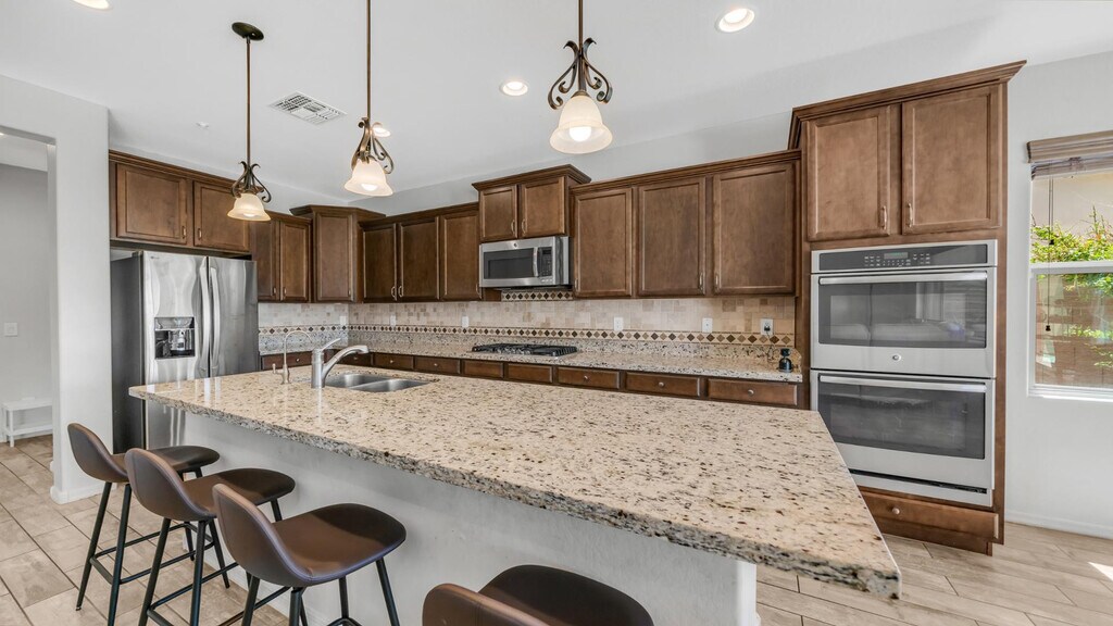 Luxury Peoria rental home at 31106 N 138th Ave with 5 bedrooms,4.5 bathrooms,and mountain views backing to a protected nature preserve with no rear neighbors. Spacious floorplan features dual primary suites,including an upstairs owners retreat with private balcony and dual walk-in closets,plus a downstairs suite ideal for guests or multigenerational living. Large loft and den offer flexible space for office,gym,or media room. Resort-style backyard includes saltwater pool,waterfall spa,and low-maintenance landscaping. Additional features include app-controlled pool automation,tankless water heater,and 3-car garage with epoxy floors and extra storage. Located near hiking,biking,parks,shopping,dining,and community amenities. Rare Peoria rental opportunity. MLS ID 7018452