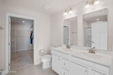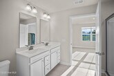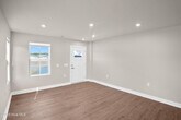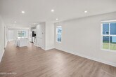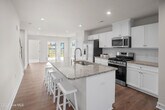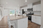 Brand new build located in The Lakes at River Bend community of Navassa. This home is an end unit and is located directly across from the brand-new resort style community pool and clubhouse with fitness center, meeting rooms and more. There's a playground for the younger ones, pickleball for the young at heart and fire pit for all to enjoy. The home features a 1 car garage, covered back patio, and a large open backyard overlooking the pond. Beautiful LVP throughout the main living areas and a living room that is open to the kitchen. The kitchen features a breakfast island already equipped with stools, granite countertops, gas stove, stainless-steel appliances, tile backsplash, pull out drawers and a pantry. The dining area has views of the pond and sliders to the covered back patio. The master bedroom is also located on the lower level and has views of the pond as well and an ensuite bath equipped with tile flooring, double vanity, walk in shower and walk in closet. The laundry room features a full-size washer and dryer, storage closet, and access to the garage. Venture upstairs where you will find the other two bedrooms, full bath and the floored walk-in attic and storage closet. No smoking. Pets are negotiable with nonrefundable pet fee and monthly fee per pet. Available September 1, 2025