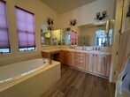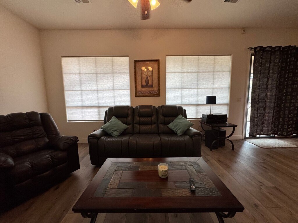 Welcome to the 4 BR Laughlin Ranch Golf Estate, a fully furnished gem nestled in the heart of Bullhead City, AZ. with GATED entrance for your secure arrival. This luxurious home boasts four spacious bedrooms and 2.5 well-appointed bathrooms, offering ample space for comfort and relaxation. The house comes complete with essential appliances such as a washer, dryer, refrigerator, and stove and is fully stocked with kitchenware, dishware, linens, sheets, games, Big Screen TV's and Power Reclining couch and loveseat for your comfort and pleasure for watching favorite programs or winter sports, this house has it all! The kitchen is fully stocked with kitchenware, and linens and towels are also provided, ensuring you only need to bring your clothes and toothbrush. As part of the Laughlin Ranch Gated community, you'll have access to the Grill-Public Restaurant & Bar, a delightful spot for dining and socializing and at additional expense ENJOY THE Pool, workout area and more!! For those seeking leisure and wellness, golf and spa services are available at an additional cost. With utilities included in the package, this home offers a hassle-free living experience. Experience the best of Bullhead City living at the 4 BR Laughlin Ranch Golf Estate.home in Golf Community