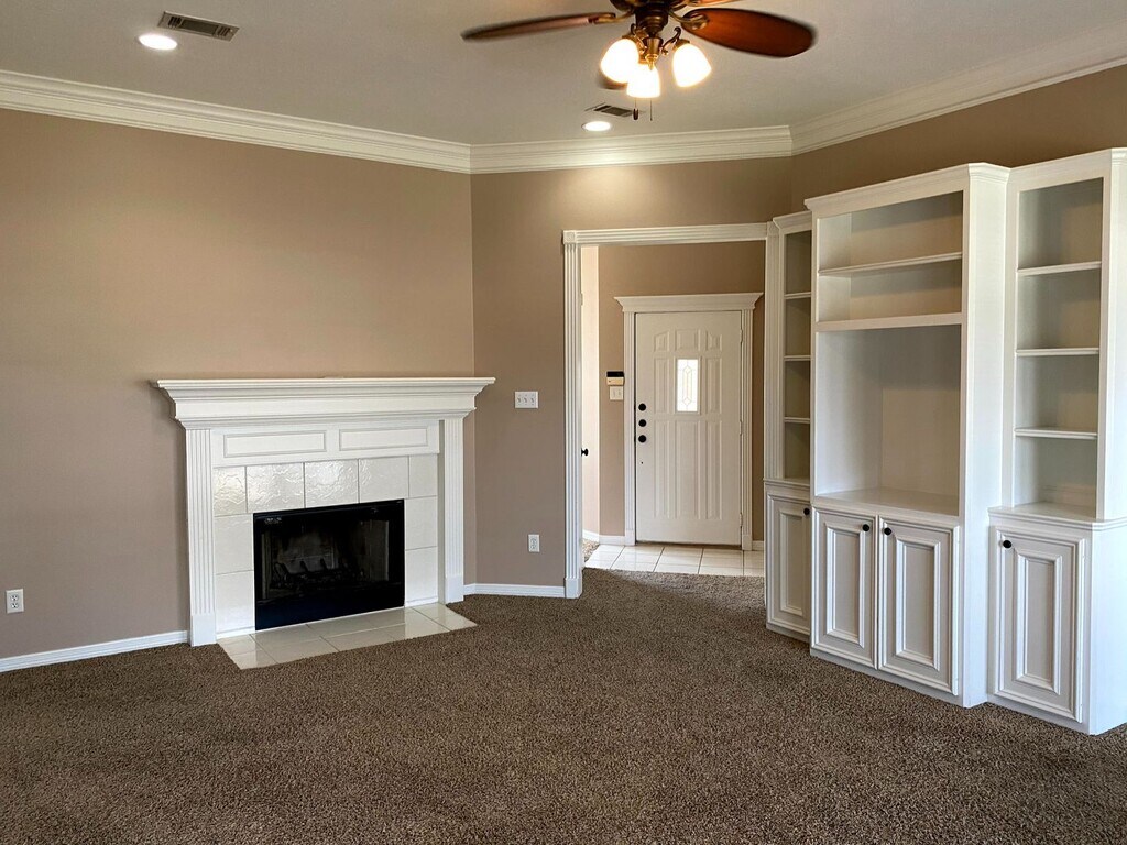 This property features a formal dining room that can also serve as a study, playroom, or second living area. The kitchen and breakfast area lead into a spacious living room equipped with built-ins and a cozy fireplace. The split-bedroom floor plan features two bedrooms and one bathroom on one side of the house, while the master suite is on the opposite side. Enjoy the great deck in your privately fenced backyard. The neighborhood is conveniently located off the bypass, ensuring minimal through traffic. The home comes with a refrigerator and has a two-car garage. Please note that there are only washer and dryer hookups. This beautiful home will be available for move-in on 7/24/2026!